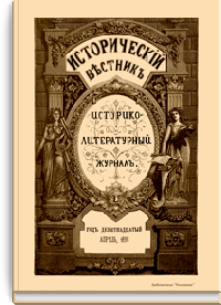 «Исторический вестник» - русский ежемесячный историко-литературный журнал. Издавался в Санкт-Петербурге с 1880-го по 1917 г. Журнал был основан А.С. Сувориным и С.Н. Шубинским с целью «знакомить читателей в живой, общедоступной форме с современным состоянием исторической науки и литературы в России и Европе». Вышло 150 тт. Каждый том состоял из трёх ежемесячных выпусков, имел свою нумерацию страниц, оглавление, список иллюстраций. Журнал приобрёл устойчивую популярность среди читателей, заняв прочное место в «триумвирате» русских исторических журналов наряду с «Русским архивом» и «Русской стариной». опережая их по количеству подписчиков. Отличием «Исторического вестника» было то, что он не помещал на своих страницах необработанных, сырых материалов. С другой стороны, журнал приближался по своему типу к журналам общелитературного образца, сочетая в себе коммерческий успех и доступное изложение материала.
