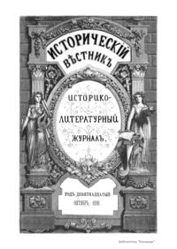 «Исторический вестник» - русский ежемесячный историко-литературный журнал. Издавался в Санкт-Петербурге с 1880-го по 1917 г. Журнал был основан А.С. Сувориным и С.Н. Шубинским с целью «знакомить читателей в живой, общедоступной форме с современным состоянием исторической науки и литературы в России и Европе». Вышло 150 тт. Каждый том состоял из трёх ежемесячных выпусков, имел свою нумерацию страниц, оглавление, список иллюстраций. Журнал приобрёл устойчивую популярность среди читателей, заняв прочное место в «триумвирате» русских исторических журналов наряду с «Русским архивом» и «Русской стариной». опережая их по количеству подписчиков. Отличием «Исторического вестника» было то, что он не помещал на своих страницах необработанных, сырых материалов. С другой стороны, журнал приближался по своему типу к журналам общелитературного образца, сочетая в себе коммерческий успех и доступное изложение материала.