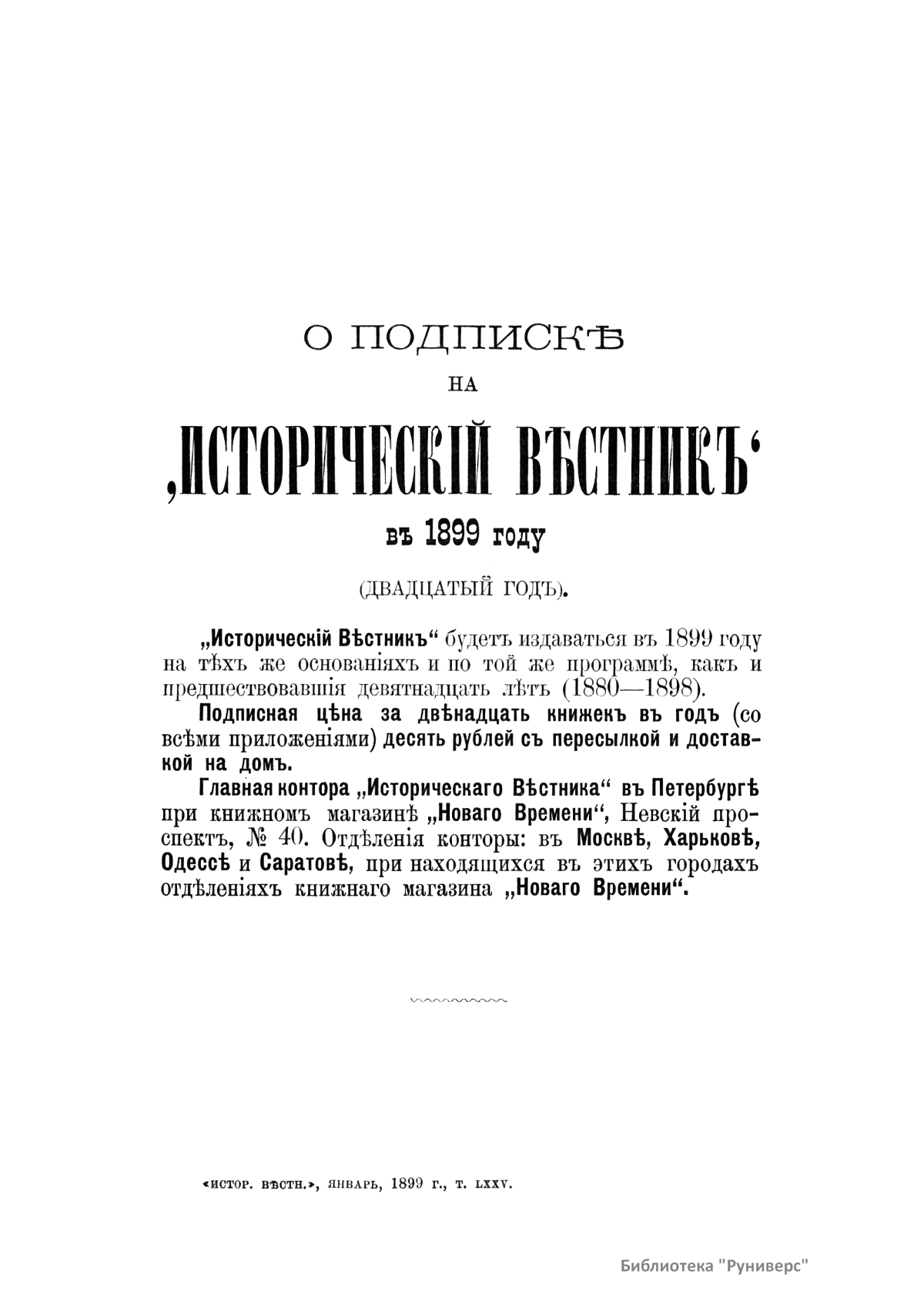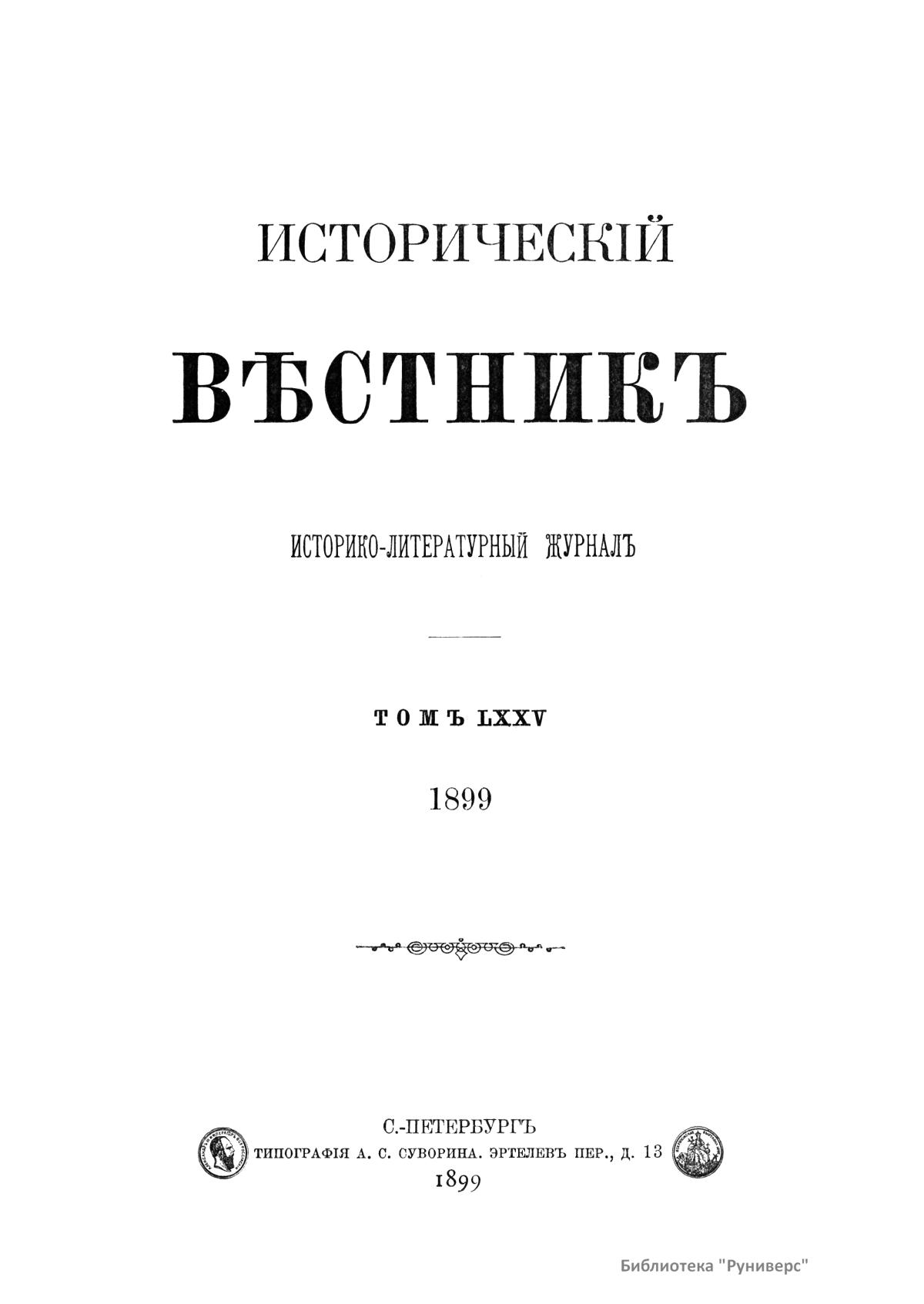 Исторический вестник. Историко-литературный журнал. Том LXXV
