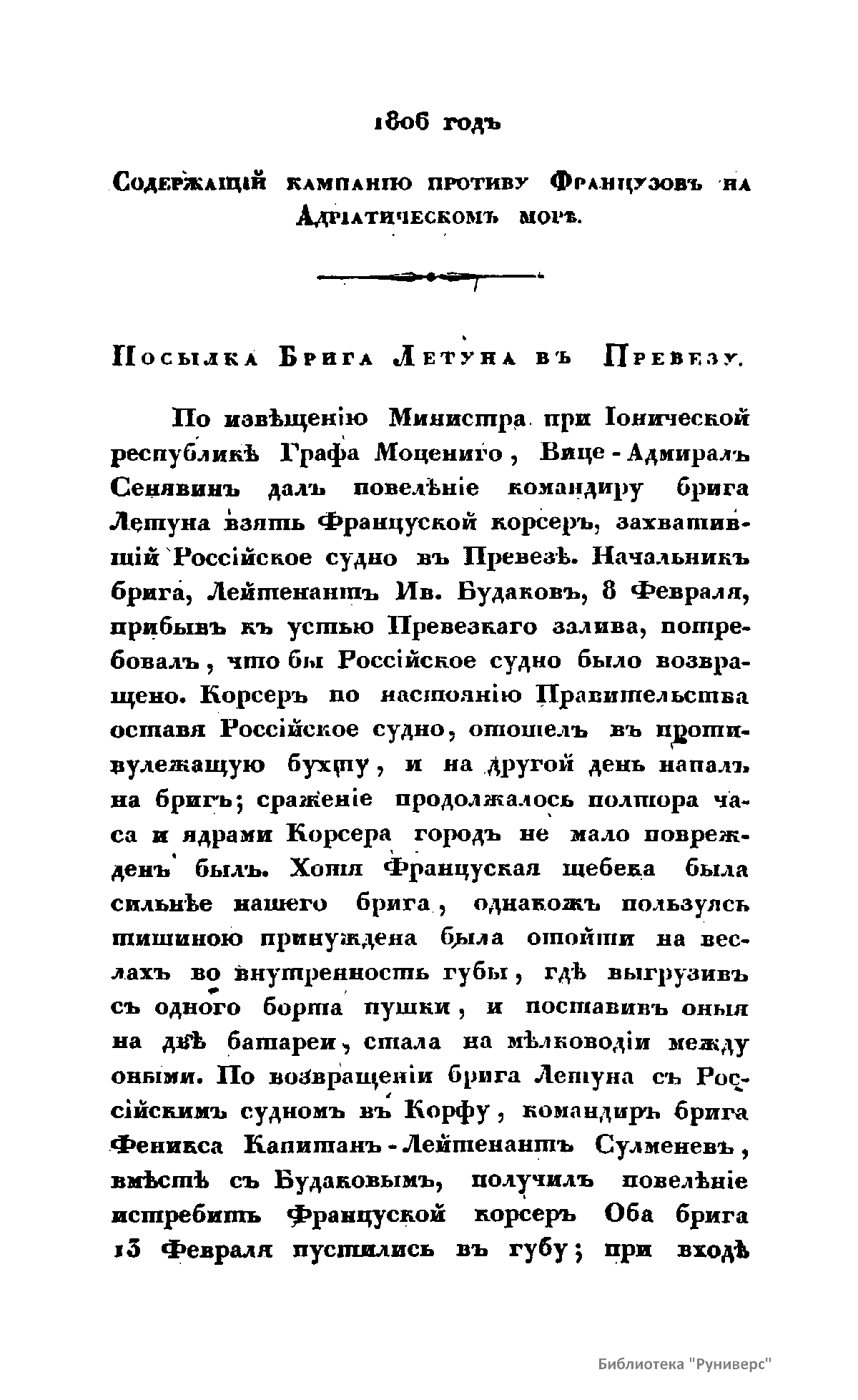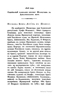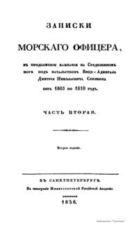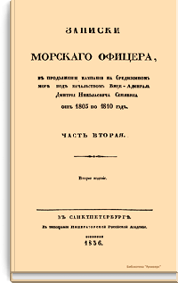 Записки морскаго офицера, въ продолженiи кампанiи на Средиземномъ морѣ подъ начальствомъ Вице-Адмирала Дмитрiя Николаевича Сенявина отъ 1805 по 1810 годъ. Часть вторая