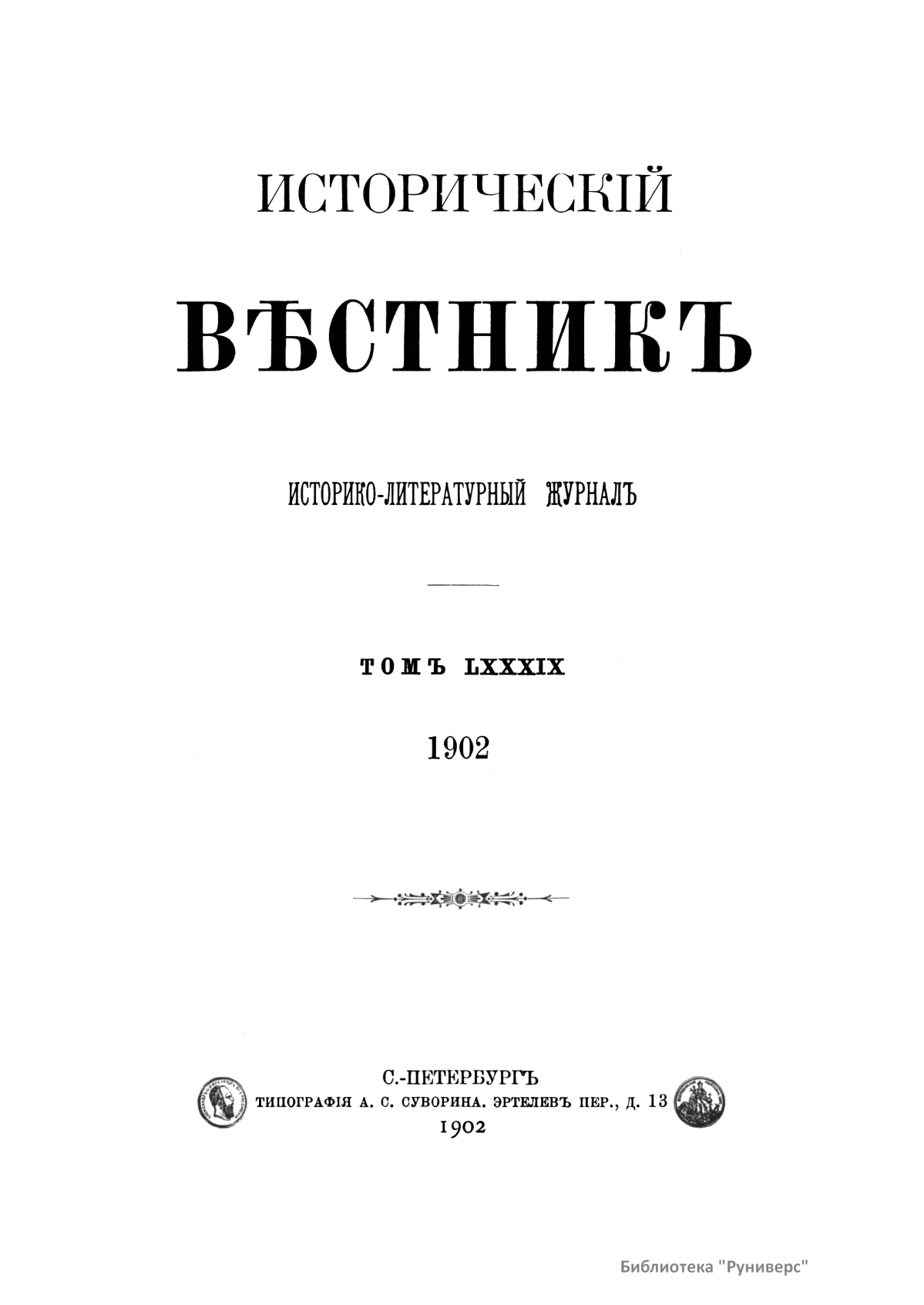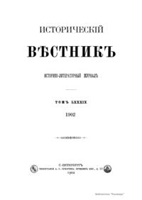 Исторический вестник. Историко-литературный журнал. Том LXXXIX