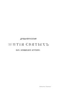 Древнерусскiя житiя святыхъ какъ историческiй источникъ