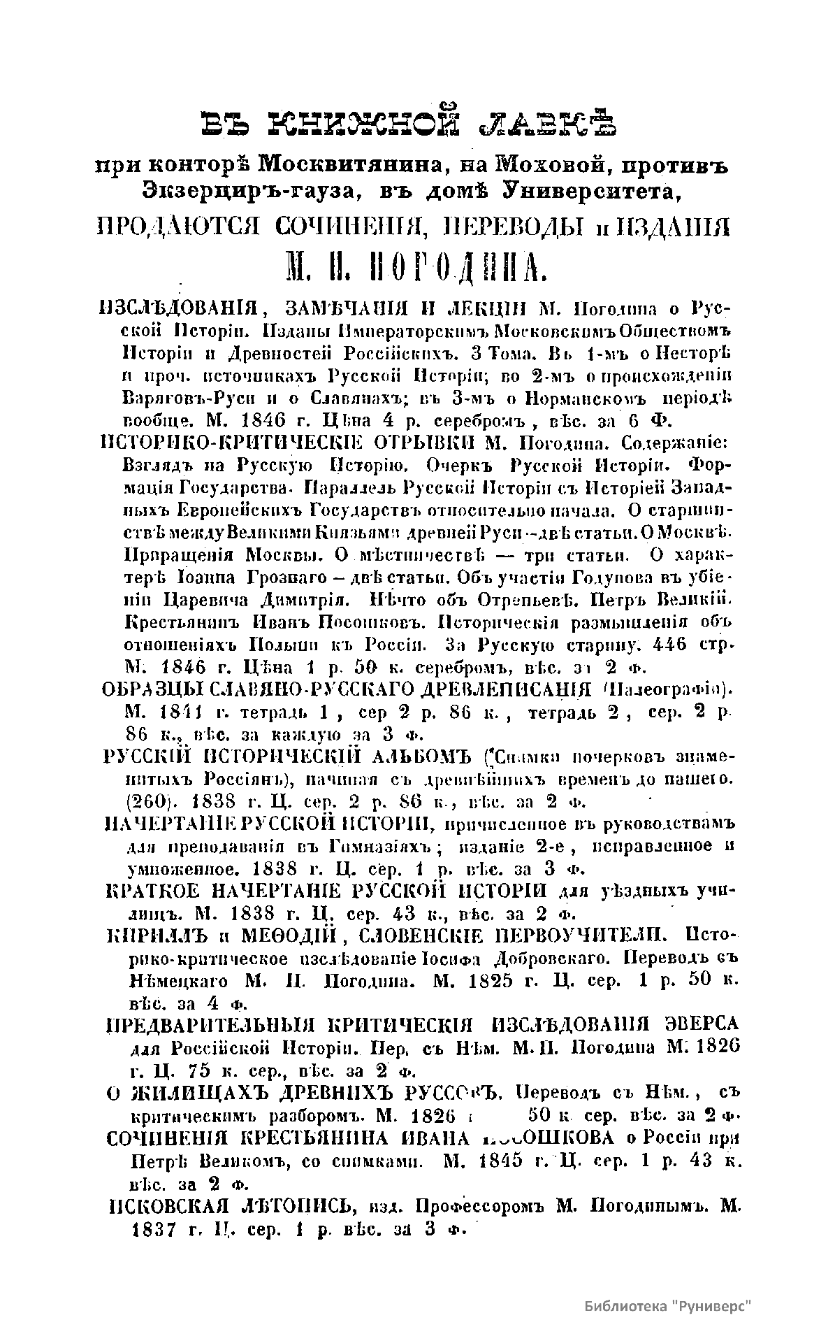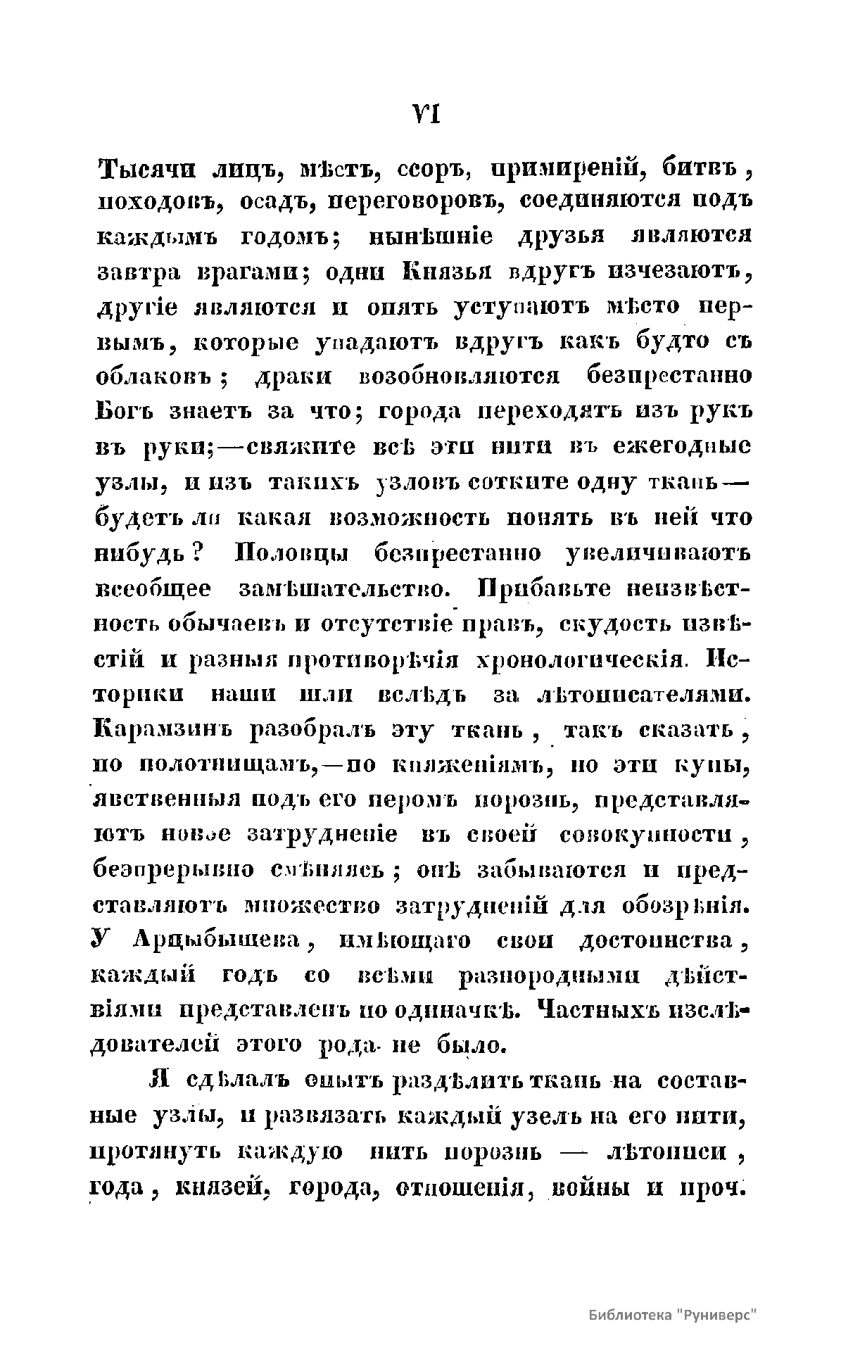 «На пользу науке, на славу Отечества, к чести своего времени» Первый том посвящен источникам древнейшей русской истории и преимущественно Несторовой летописи. В его состав вошло уже напечатанное прежде исследование, к которому присоединены замечания о прочих источниках: Русской правде, церковных уставах, северных сагах и пр. Приведен разбор всех мнений о Несторовой летописи. Предмет второго тома – происхождение Варягов-Руси. Здесь помещено первое рассуждение автора об этом предмете, исправленное и дополненное новыми исследованиями и открытиями. Автор разбирает также новые мнения о происхождении Варягов-Руси. В этом томе опубликованы лекции о славянах, в которых заключается краткое извлечение о Славянских Древностях Шафарика. Третий том содержит исследования и замечания о событиях первого периода, который автор называет Варяжским, или Норманским (862 – 1054), с объяснением всех мест Несторовой летописи, и сравнение русского начала с началом прочих западных государств, где показан источник различия между их последующими историями. Четвертый том посвящен приготовительным и общим исследованиям: об источниках для удельного периода, т.е. о летописях и их хронологии, о родах князей, о пределах и городах Ярославовых княжеств, о праве великокняжеского наследства, об отношении великого князя к прочим князьям, об отношении их между собой. В пятом томе исследуются междуусобные войны князей и их сношения, внешние войны и внешние сношения. В шестом томе автор приводит азбучный список русских князей до монгольского ига; список русских князей до монгольского ига по степеням и старшинству; список князей по княжествам и уделам. В седьмом томе автор рассуждает о князе, его дружине, боярах и отроках; о городах и их обитателях; о волостях и их отношении к городам; о военном деле; о праве; торговле; церкви, грамотности и образовании.