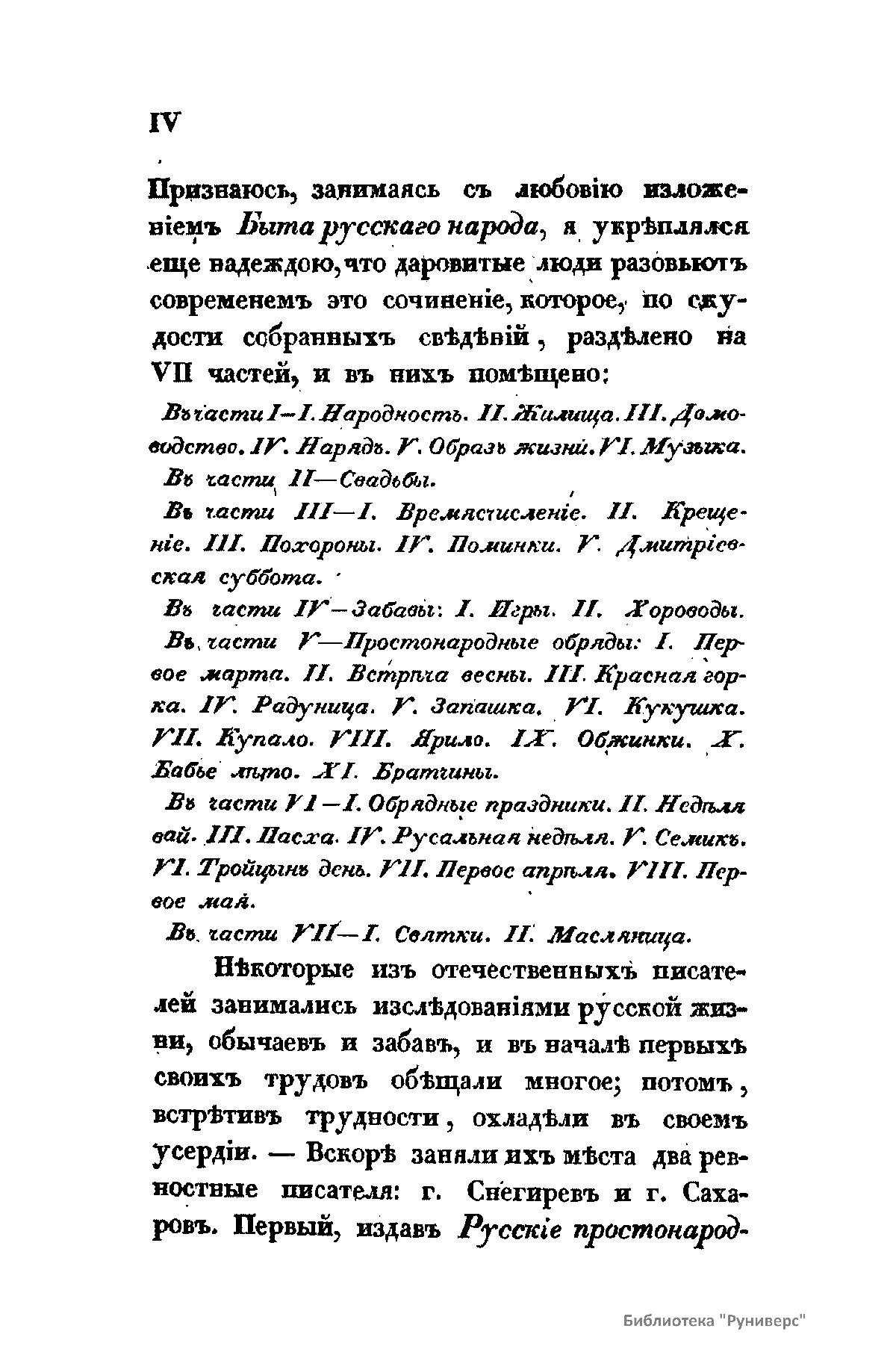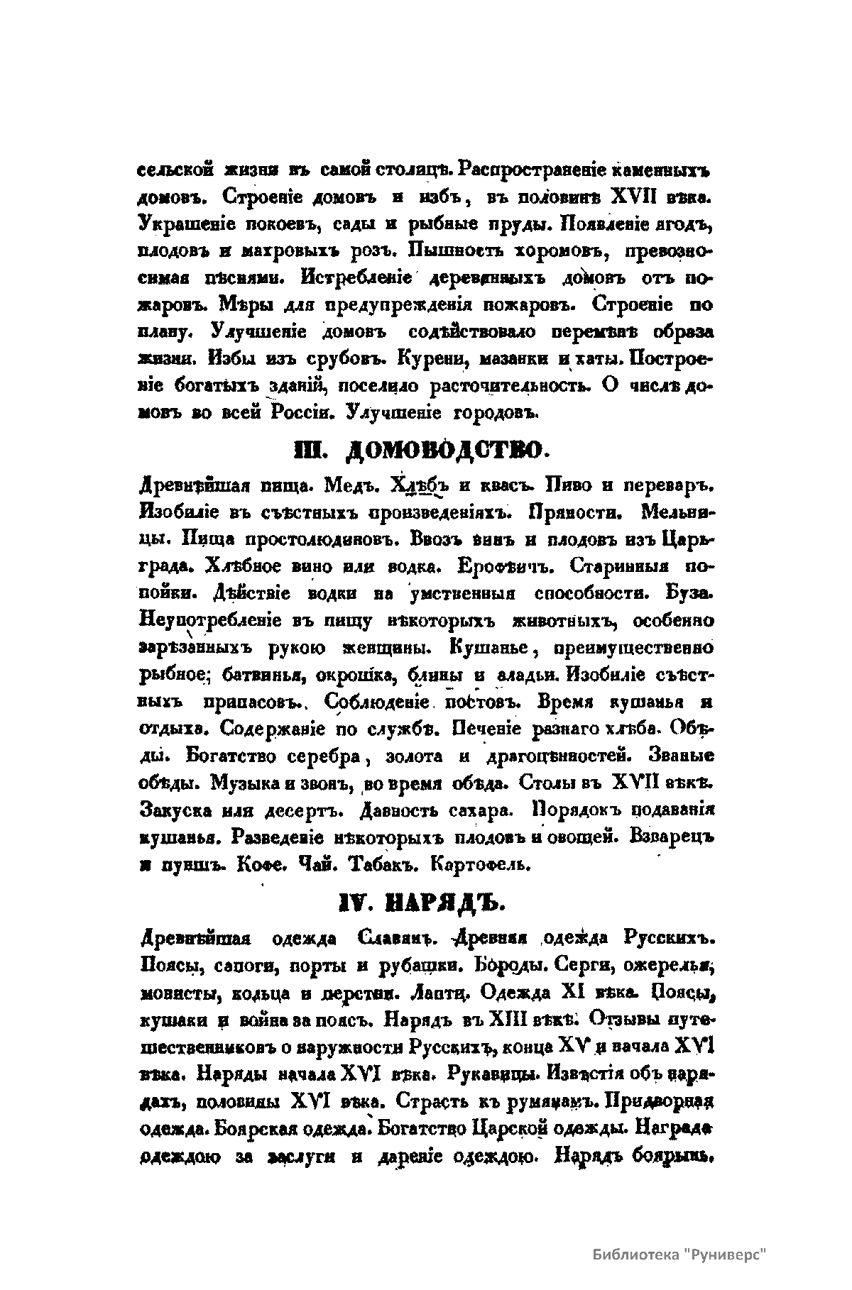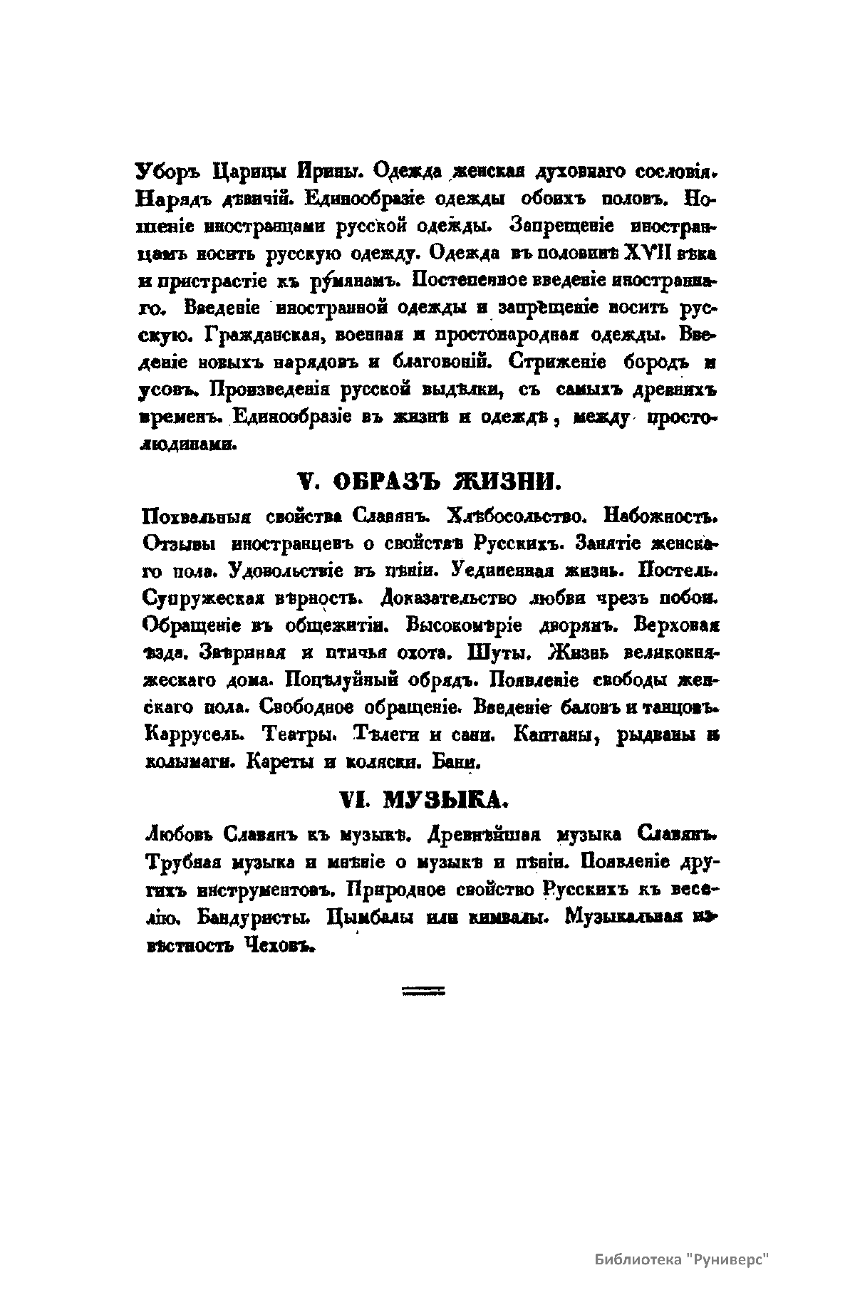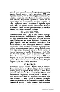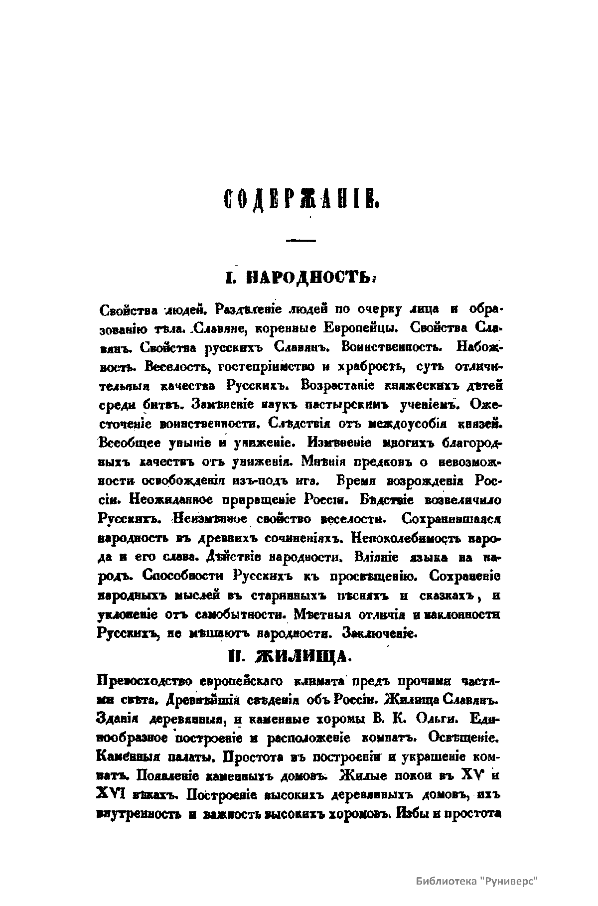 В издании в историческом аспекте автор рассматривает следующие вопросы: свойства и характер русских славян; жилища; домоводство; одежда; образ жизни; музыка.