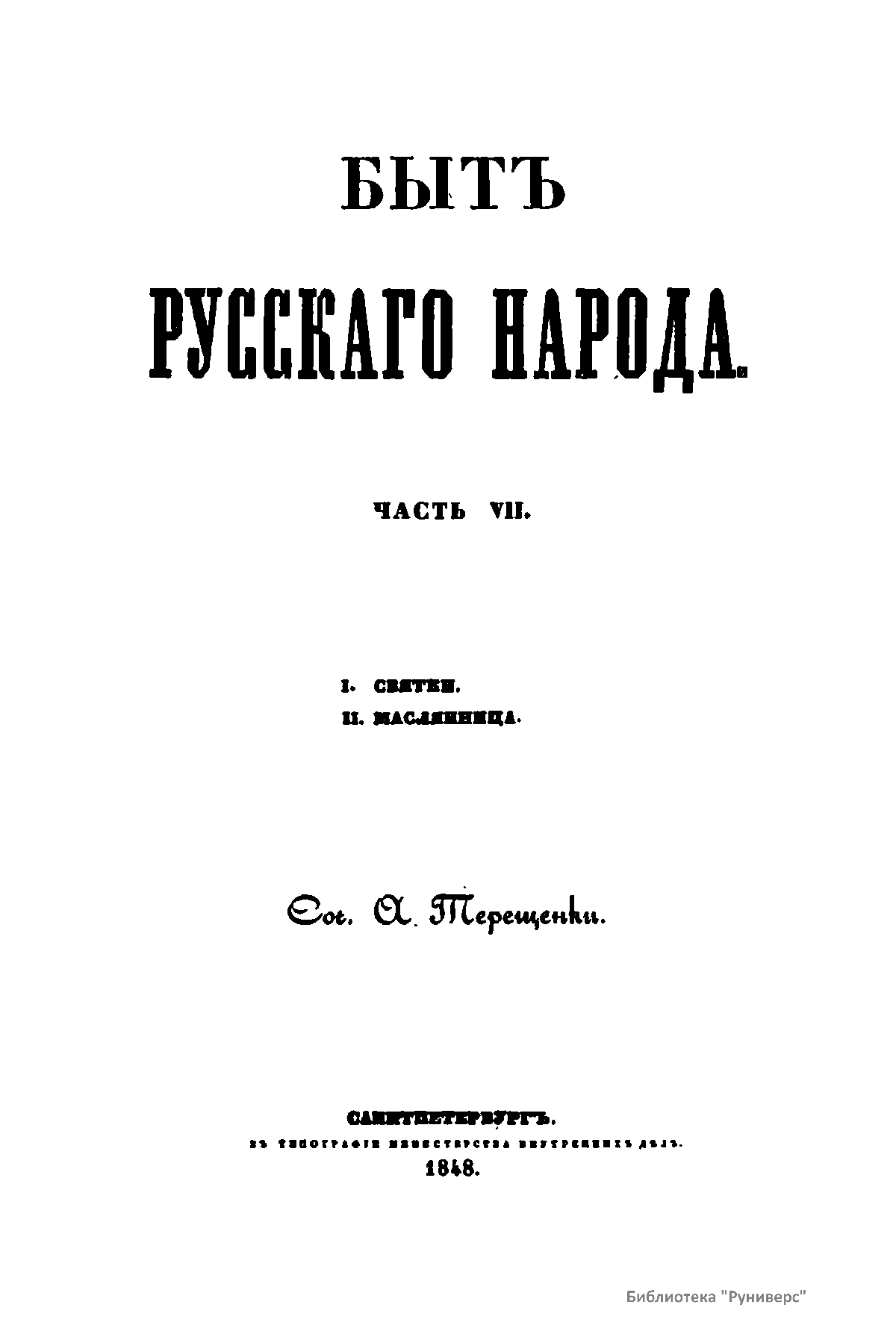 Бытъ русскаго народа. Часть VII