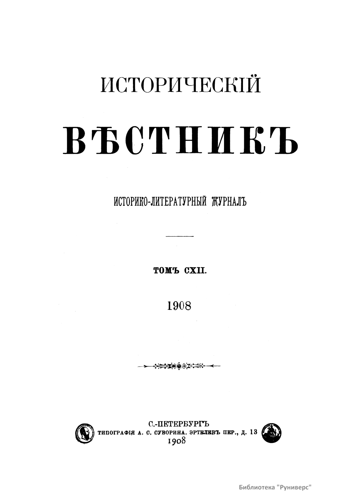 Исторический вестник. Историко-литературный журнал. Том CXII
