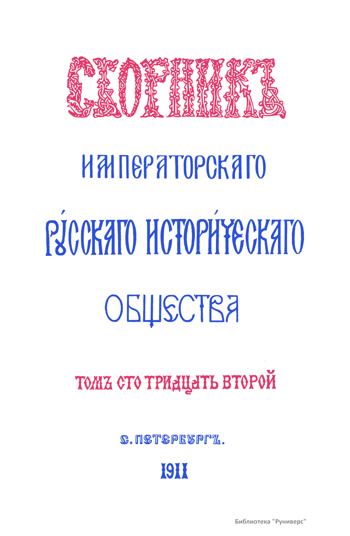 Сборникъ Русскаго историческаго общества. Томъ сто тридцать второй