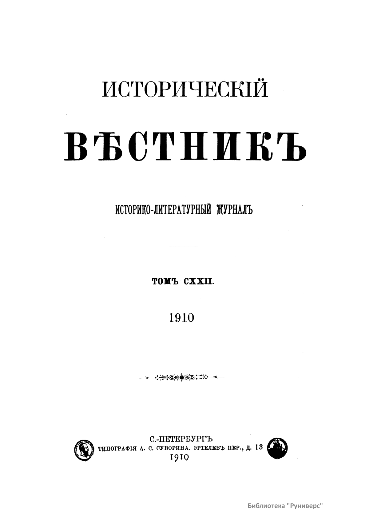 Исторический вестник. Историко-литературный журнал. Том CXXII