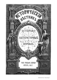 «Исторический вестник» - русский ежемесячный историко-литературный журнал. Издавался в Санкт-Петербурге с 1880-го по 1917 г. Журнал был основан А.С. Сувориным и С.Н. Шубинским с целью «знакомить читателей в живой, общедоступной форме с современным состоянием исторической науки и литературы в России и Европе». Вышло 150 тт. Каждый том состоял из трёх ежемесячных выпусков, имел свою нумерацию страниц, оглавление, список иллюстраций. Журнал приобрёл устойчивую популярность среди читателей, заняв прочное место в «триумвирате» русских исторических журналов наряду с «Русским архивом» и «Русской стариной». опережая их по количеству подписчиков. Отличием «Исторического вестника» было то, что он не помещал на своих страницах необработанных, сырых материалов. С другой стороны, журнал приближался по своему типу к журналам общелитературного образца, сочетая в себе коммерческий успех и доступное изложение материала.