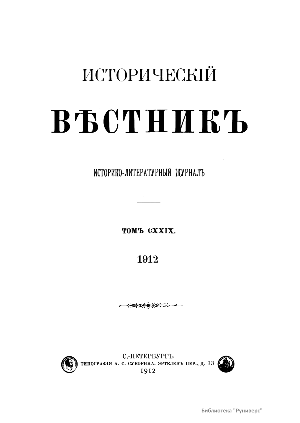 Исторический вестник. Историко-литературный журнал. Том CXXIX