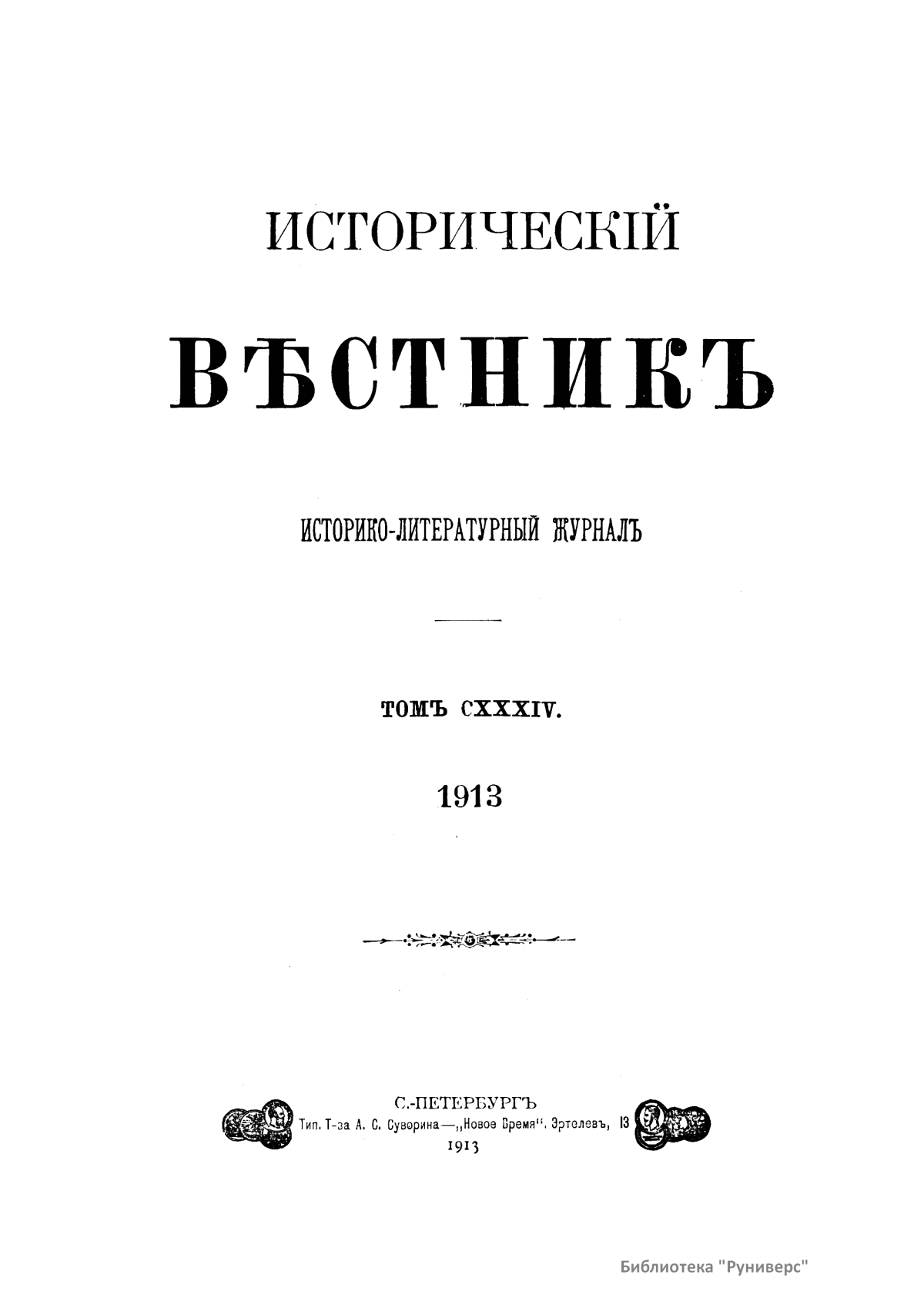 Исторический вестник. Историко-литературный журнал. Том CXXXIV