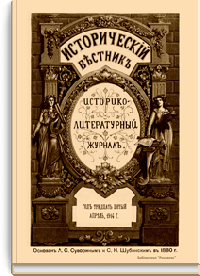 «Исторический вестник» - русский ежемесячный историко-литературный журнал. Издавался в Санкт-Петербурге с 1880-го по 1917 г. Журнал был основан А.С. Сувориным и С.Н. Шубинским с целью «знакомить читателей в живой, общедоступной форме с современным состоянием исторической науки и литературы в России и Европе». Вышло 150 тт. Каждый том состоял из трёх ежемесячных выпусков, имел свою нумерацию страниц, оглавление, список иллюстраций. Журнал приобрёл устойчивую популярность среди читателей, заняв прочное место в «триумвирате» русских исторических журналов наряду с «Русским архивом» и «Русской стариной». опережая их по количеству подписчиков. Отличием «Исторического вестника» было то, что он не помещал на своих страницах необработанных, сырых материалов. С другой стороны, журнал приближался по своему типу к журналам общелитературного образца, сочетая в себе коммерческий успех и доступное изложение материала.