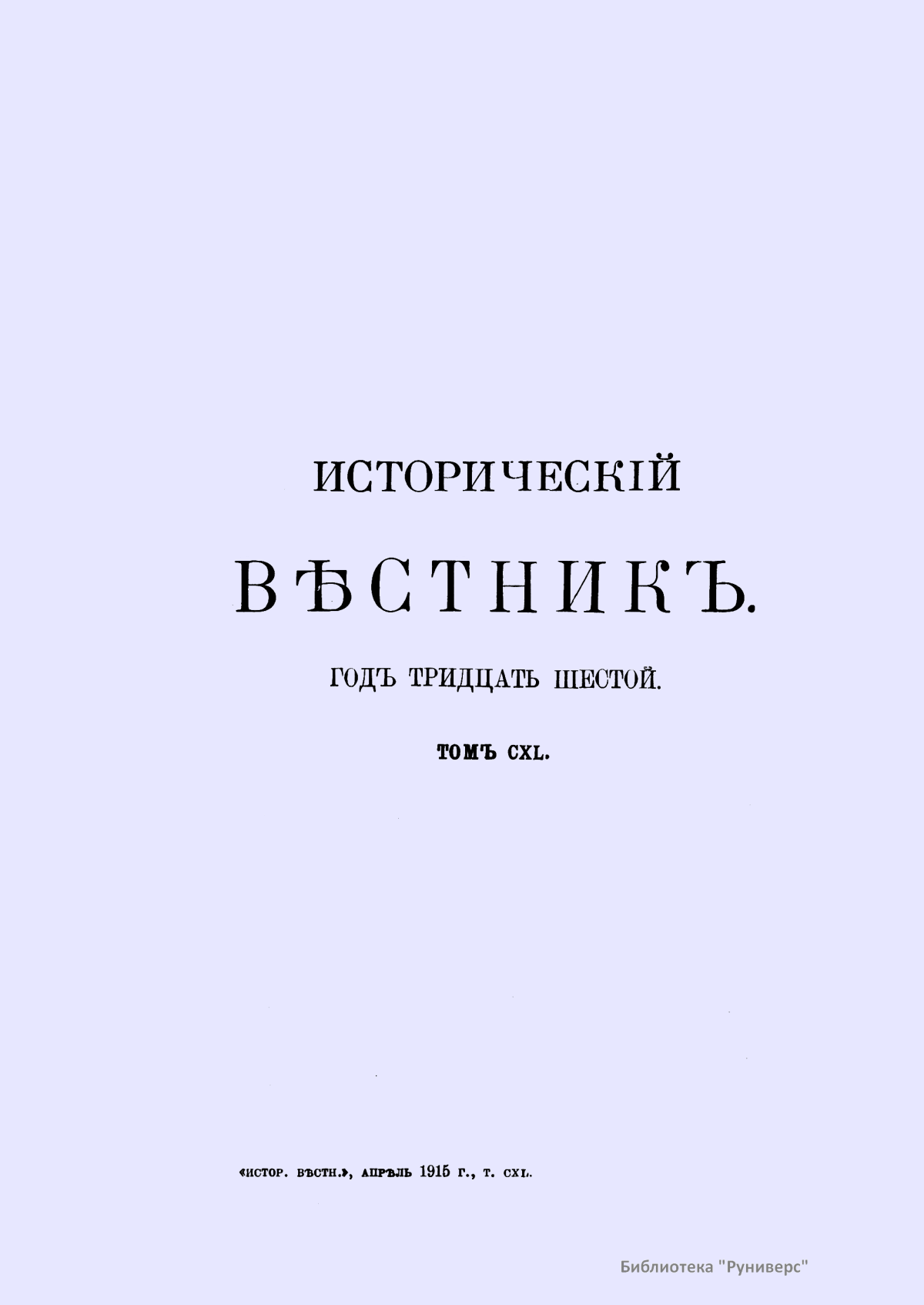 Исторический вестник. Историко-литературный журнал. Том CXL