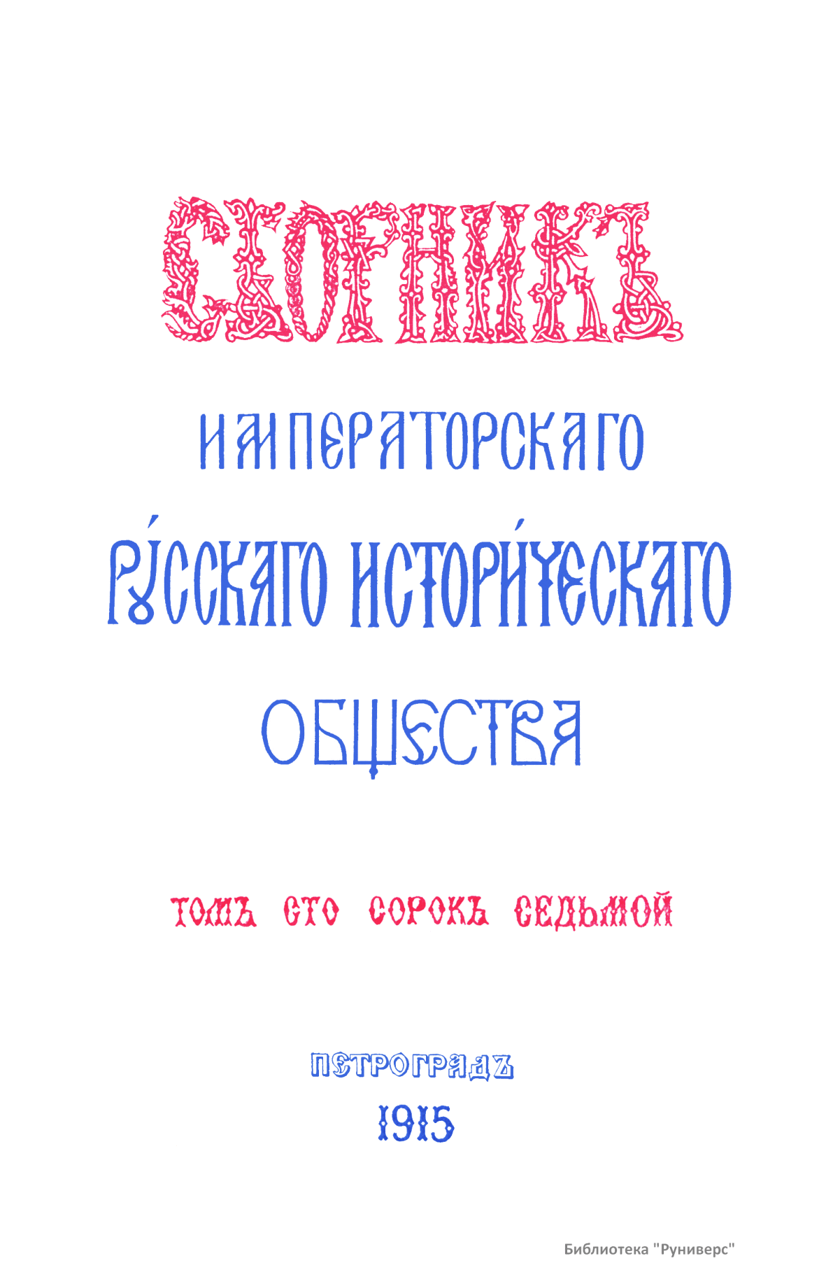 Сборникъ Русскаго историческаго общества. Томъ сто сорокъ седьмой