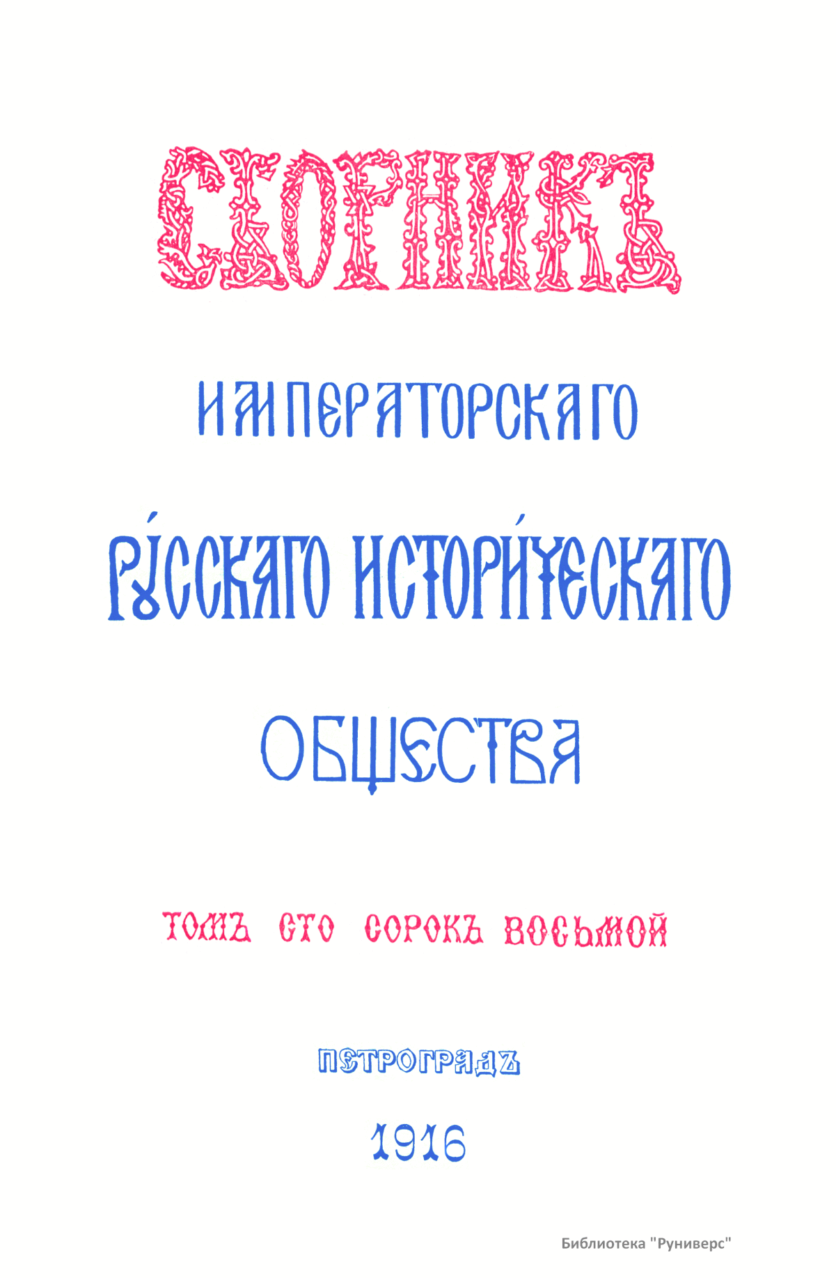 Сборникъ Русскаго историческаго общества. Томъ сто сорокъ восьмой