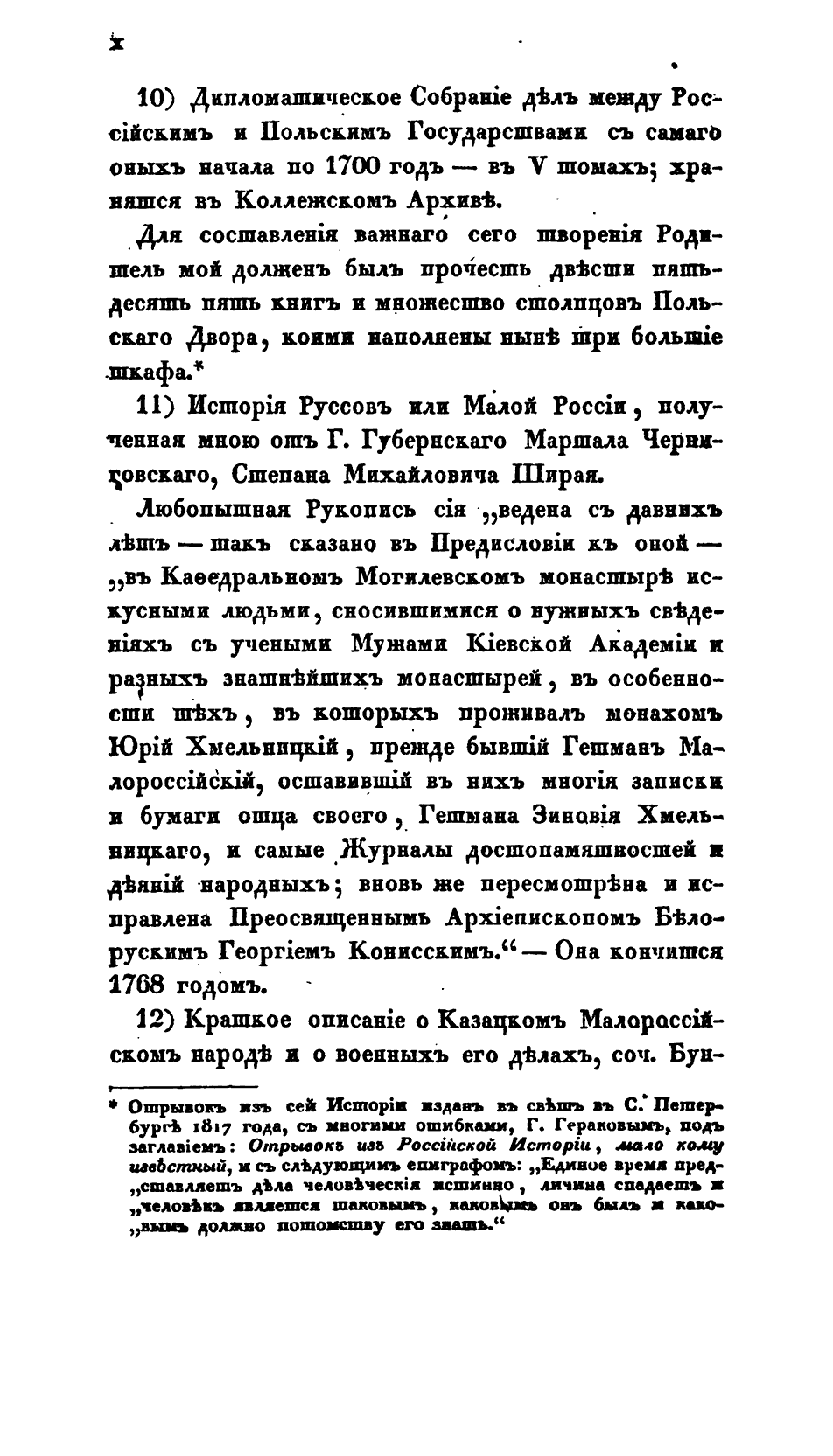 Изданный труд, принесший автору широкую популярность и научное признание. «История Малой России», к которой автор на протяжении все жизни возвращался не раз, выпуская дополненные и уточненные переиздания дает «верный перечень исторических фактов» и по сей день является одной из лучших книг, показывающих цельную историю Малороссии.