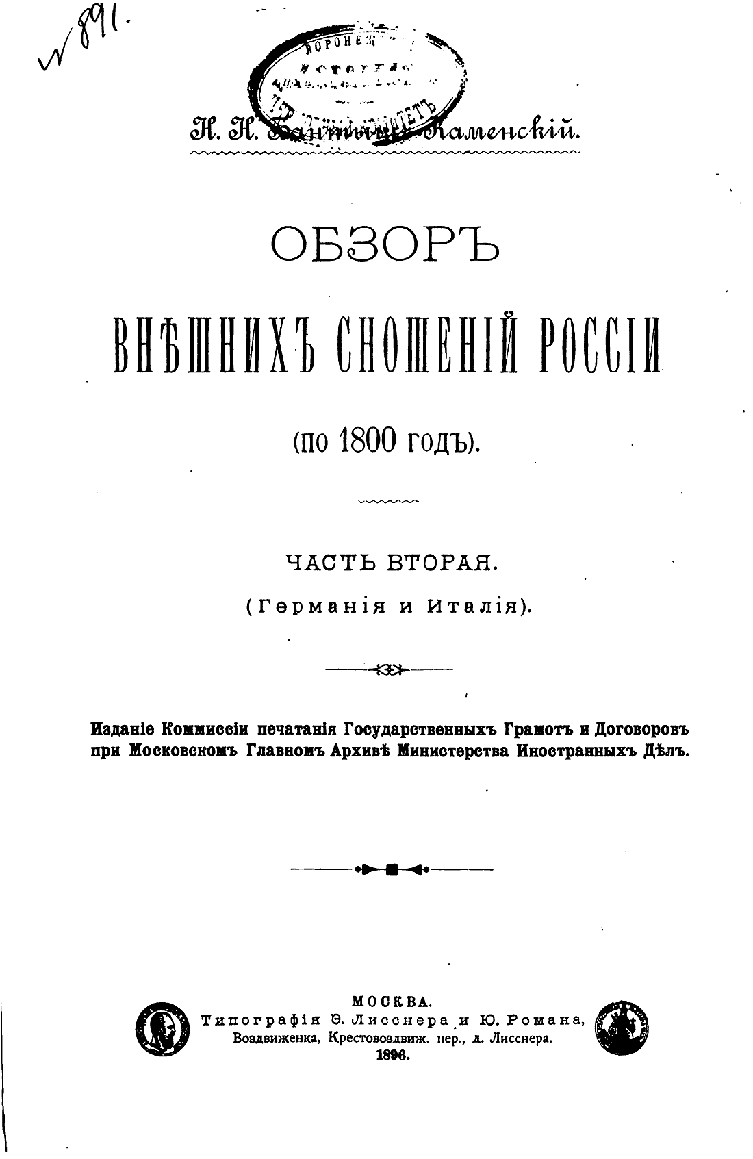 Обзор внешних сношений России (по 1800 год). Часть вторая. (Германия и Италия)