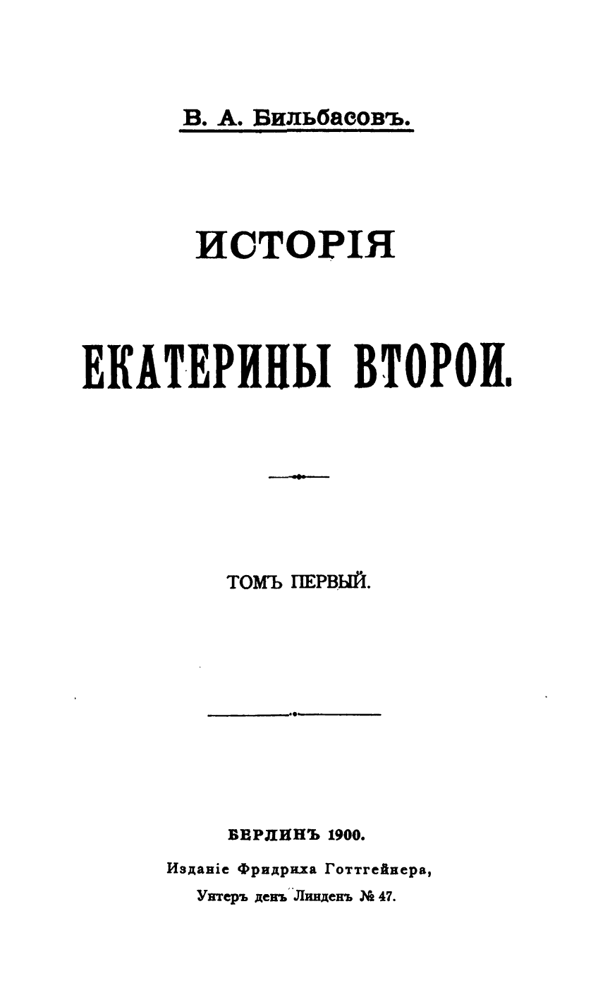 Историк и журналист, В. А. Бильбасов посвятил истории Екатерины II, весь остаток своей жизни, после того как правительство в 1883 закрыло «за вредное направление» знаменитую газету «Голос», которую он редактировал 12 лет.