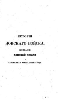 Исторiя Донскаго войска, описанiе Донской земли и Кавказскихъ Минеральныхъ водъ