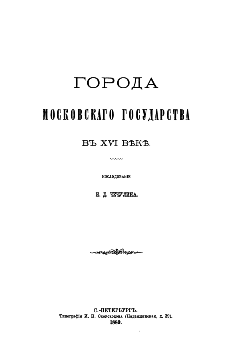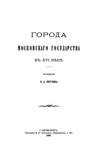 Исследование «Города Московского государства в XVI веке» - это магистерская диссертация Чечулина, защищенная на кафедре историко-филологического факультета Санкт-Петербургского университета в 1889 году.