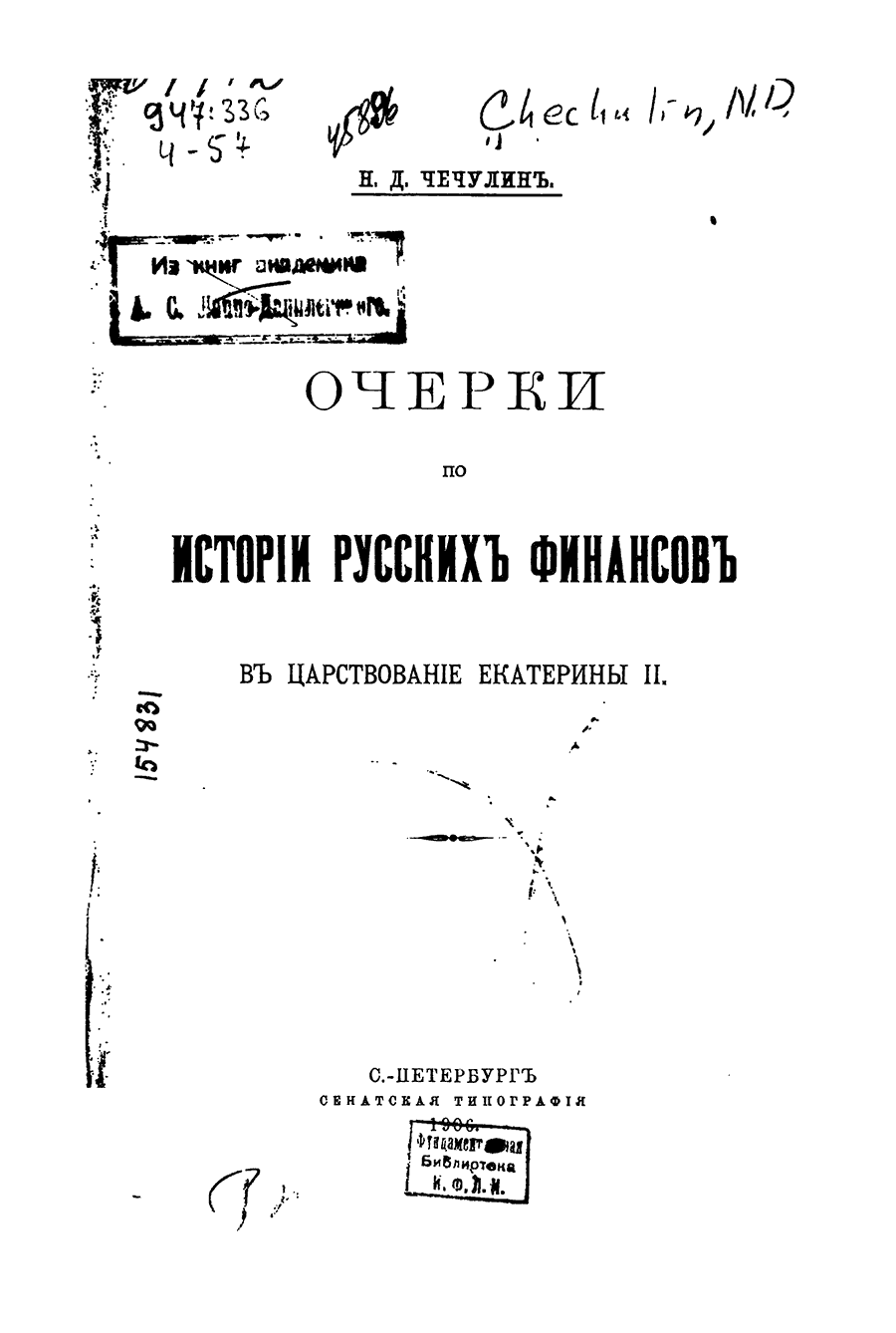 Очерки по исторiи русскихъ финансовъ въ царствованiе Екатерины II