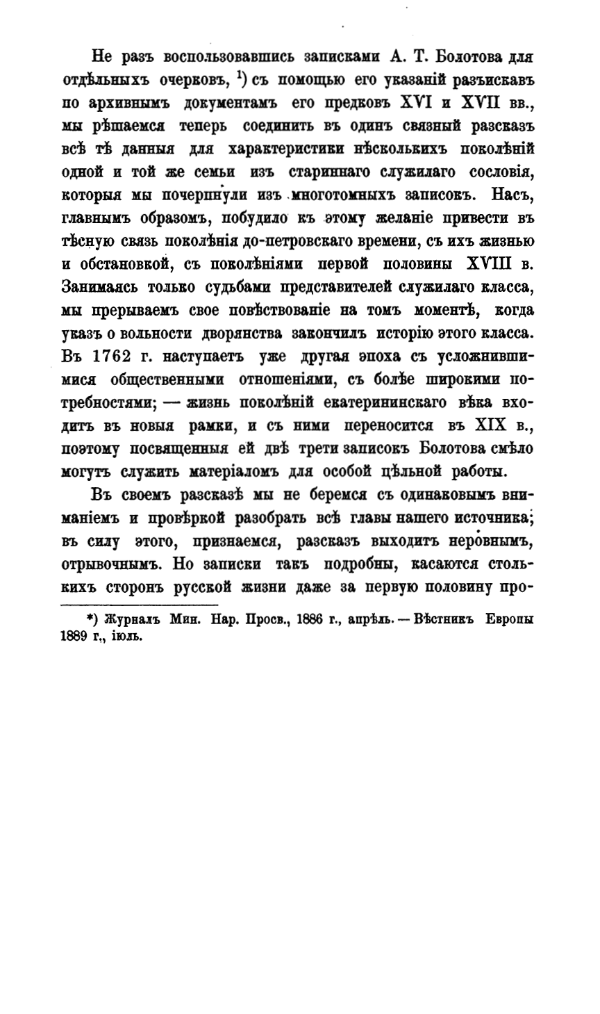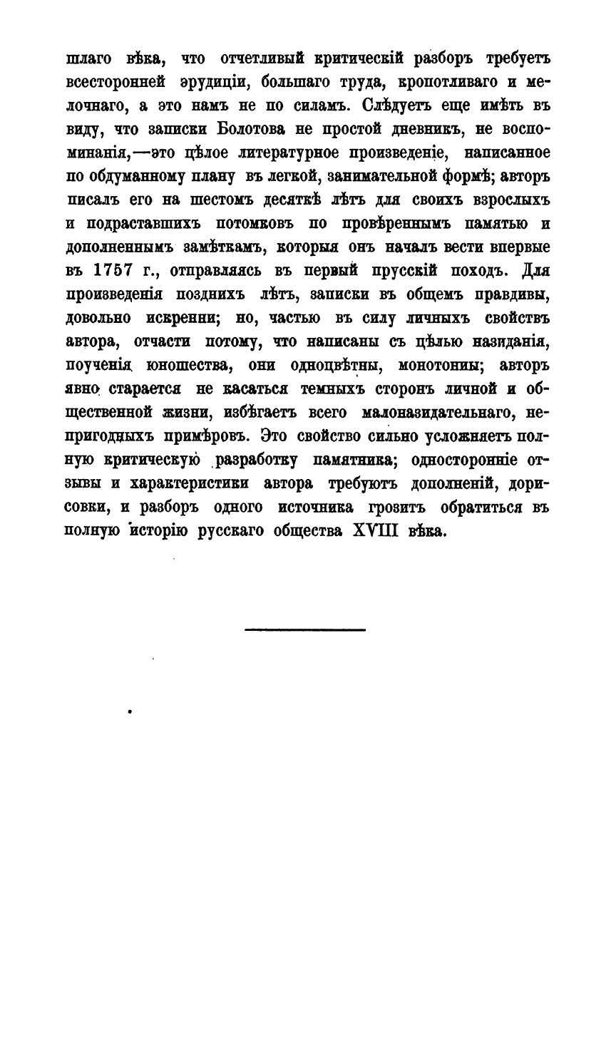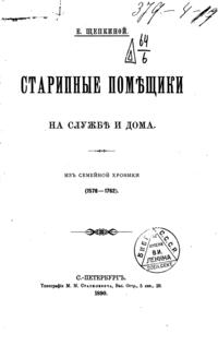 Работа одной из первых русских женщин-историков, заведовавшей отделом русской истории в Малом Энциклопедическом словаре Брокгауза -Ефрона, а также известной активистки феминистического движения Е.Н. Щепкиной , представляет собой пересказ с подробными комментариями «Записок» Андрея Болотова, изданных редакцией «Русской Старины» в 1871 - 73 гг.