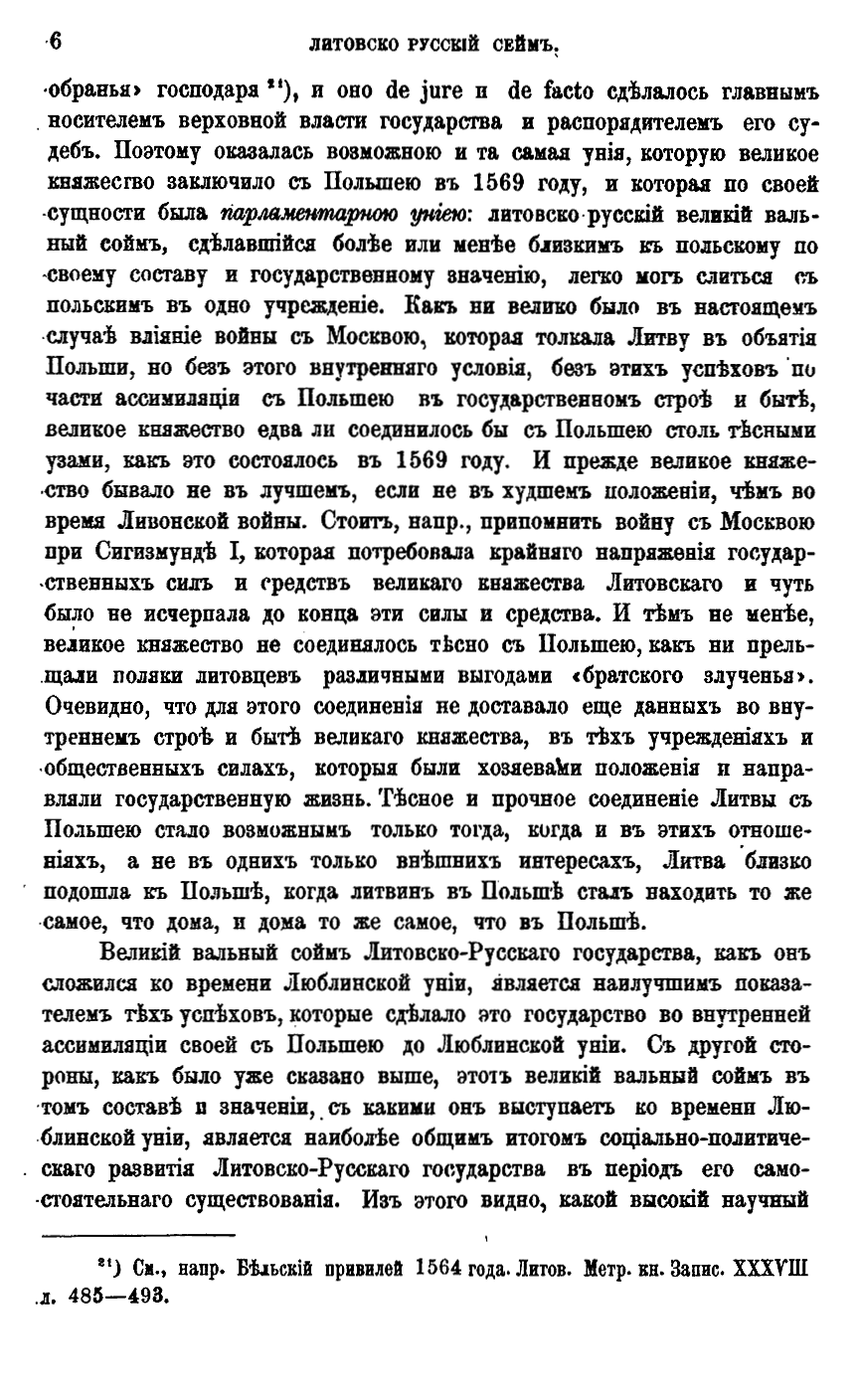 Литовско-русскiй Сеймъ. Опыт по исторiи учрежденiя въ связи съ внутреннимъ строемъ и внѣшней жизнью государства