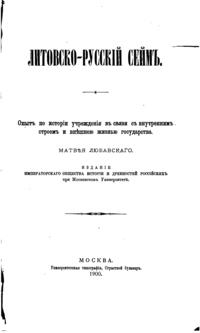 Литовско-русский Сейм. Опыт по истории учреждения в связи с внутренним строем и внешней жизнью государства