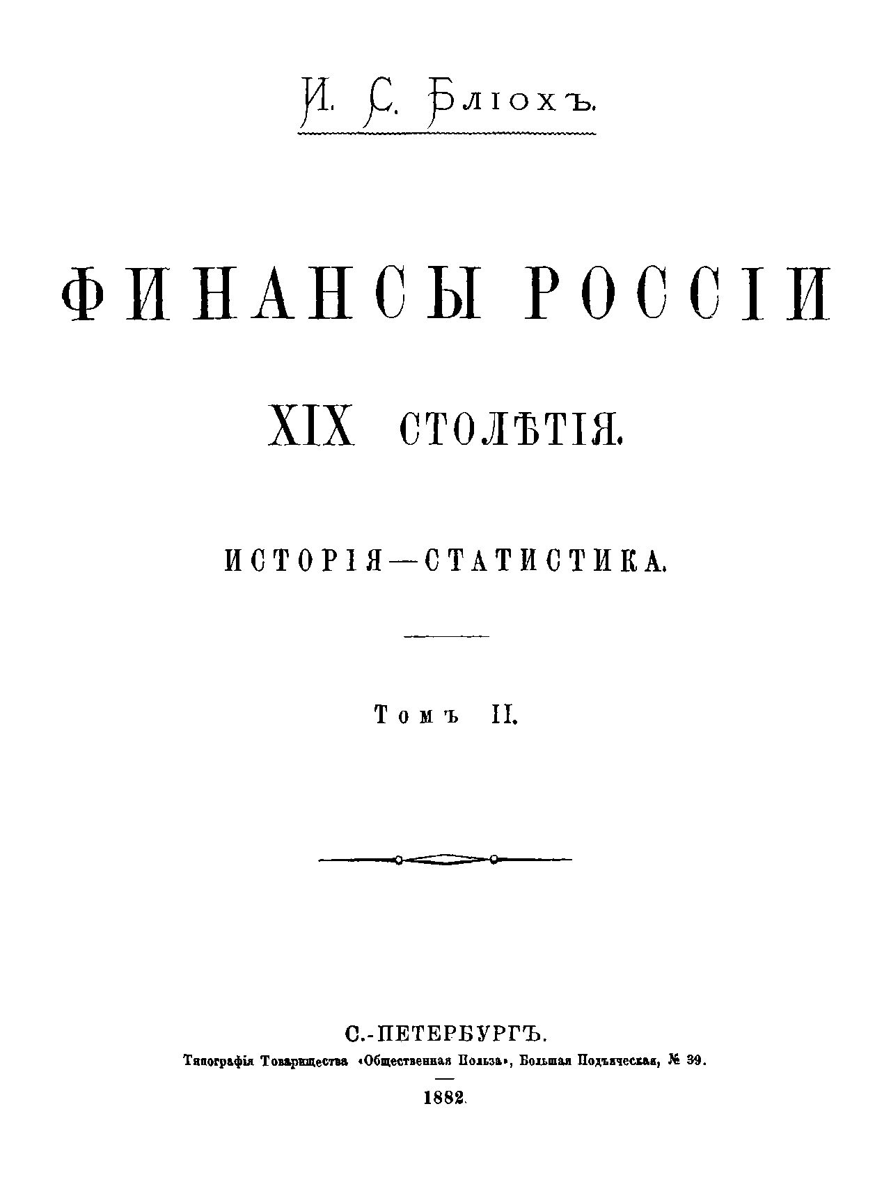 И.С. Блиох – выходец из семьи польских евреев, крупнейший российский банкир, совладелец железных дорог, один из основателей движения борьбы за мир в Европе, поддерживал развитие сионизма. Считается автором значительного числа крупных обобщающих научных исследований, освещающих глобальные стороны государственного управления. Например, фундаментальный труд «Будущая война и ее экономические последствия». В 7-ти томах; вышедший на основных европейских языках. Существуют весомые сомнения в том, что И.С. Блиох самостоятельно подготовил ряд огромных многотомных научных работ. Так, в мемуарах первого премьер-министра России С.Ю. Витте не без основания отмечается, что Блиох только составлял план книги, а писала её группа специалистов по его заказу. В биографической статье о Блиохе, говорится, что в написании его книги о войне участвовали офицеры всех крупных европейских армий, в том числе русские офицеры Генерального Штаба.