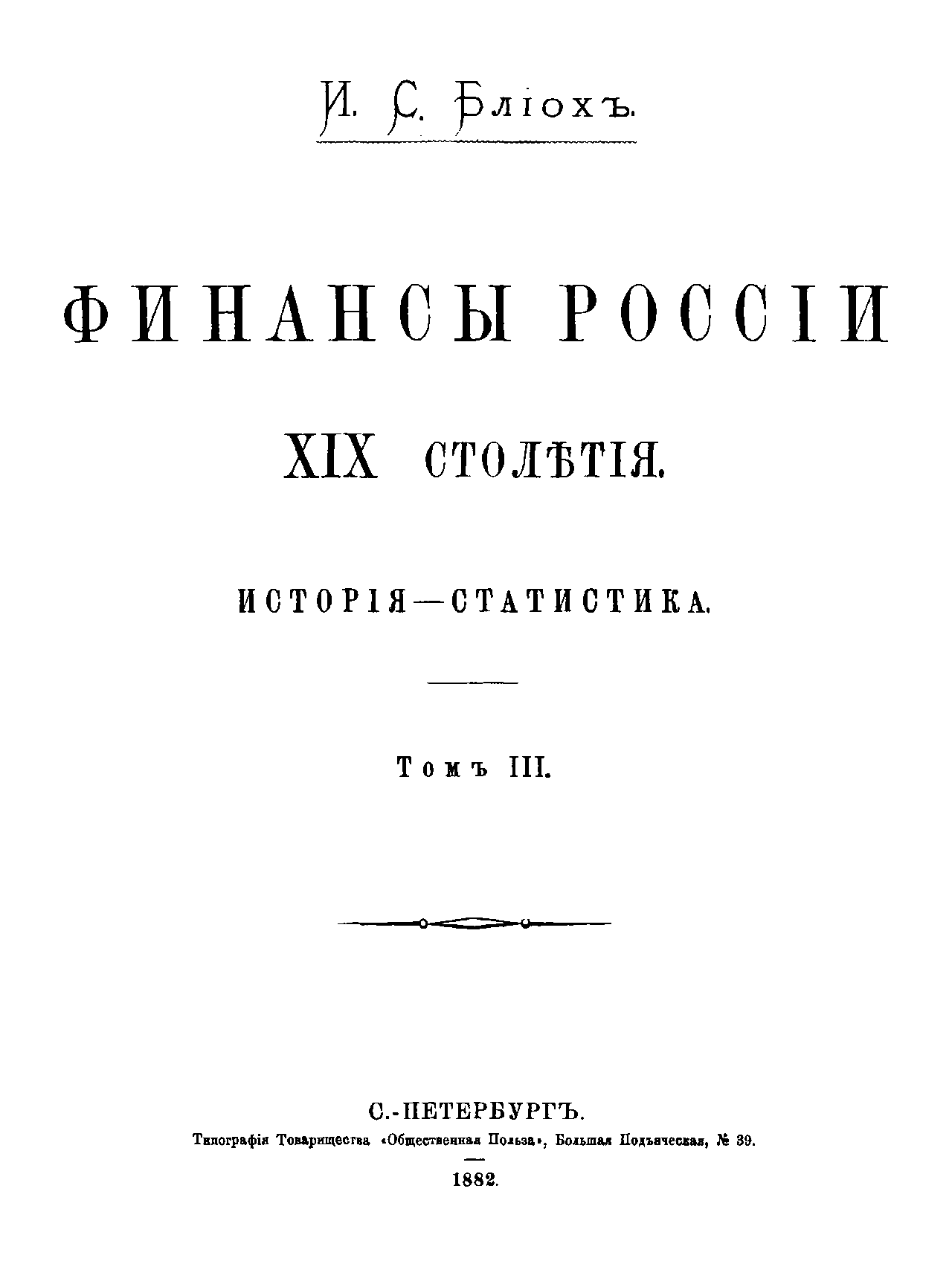 И.С. Блиох – выходец из семьи польских евреев, крупнейший российский банкир, совладелец железных дорог, один из основателей движения борьбы за мир в Европе, поддерживал развитие сионизма. Считается автором значительного числа крупных обобщающих научных исследований, освещающих глобальные стороны государственного управления. Например, фундаментальный труд «Будущая война и ее экономические последствия». В 7-ти томах; вышедший на основных европейских языках. Существуют весомые сомнения в том, что И.С. Блиох самостоятельно подготовил ряд огромных многотомных научных работ. Так, в мемуарах первого премьер-министра России С.Ю. Витте не без основания отмечается, что Блиох только составлял план книги, а писала её группа специалистов по его заказу. В биографической статье о Блиохе, говорится, что в написании его книги о войне участвовали офицеры всех крупных европейских армий, в том числе русские офицеры Генерального Штаба.