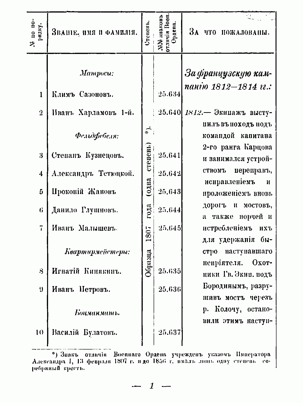 Список нижних чинов - Георгиевских кавалеров Гвардейского экипажа со времени его формирования в 1810 году