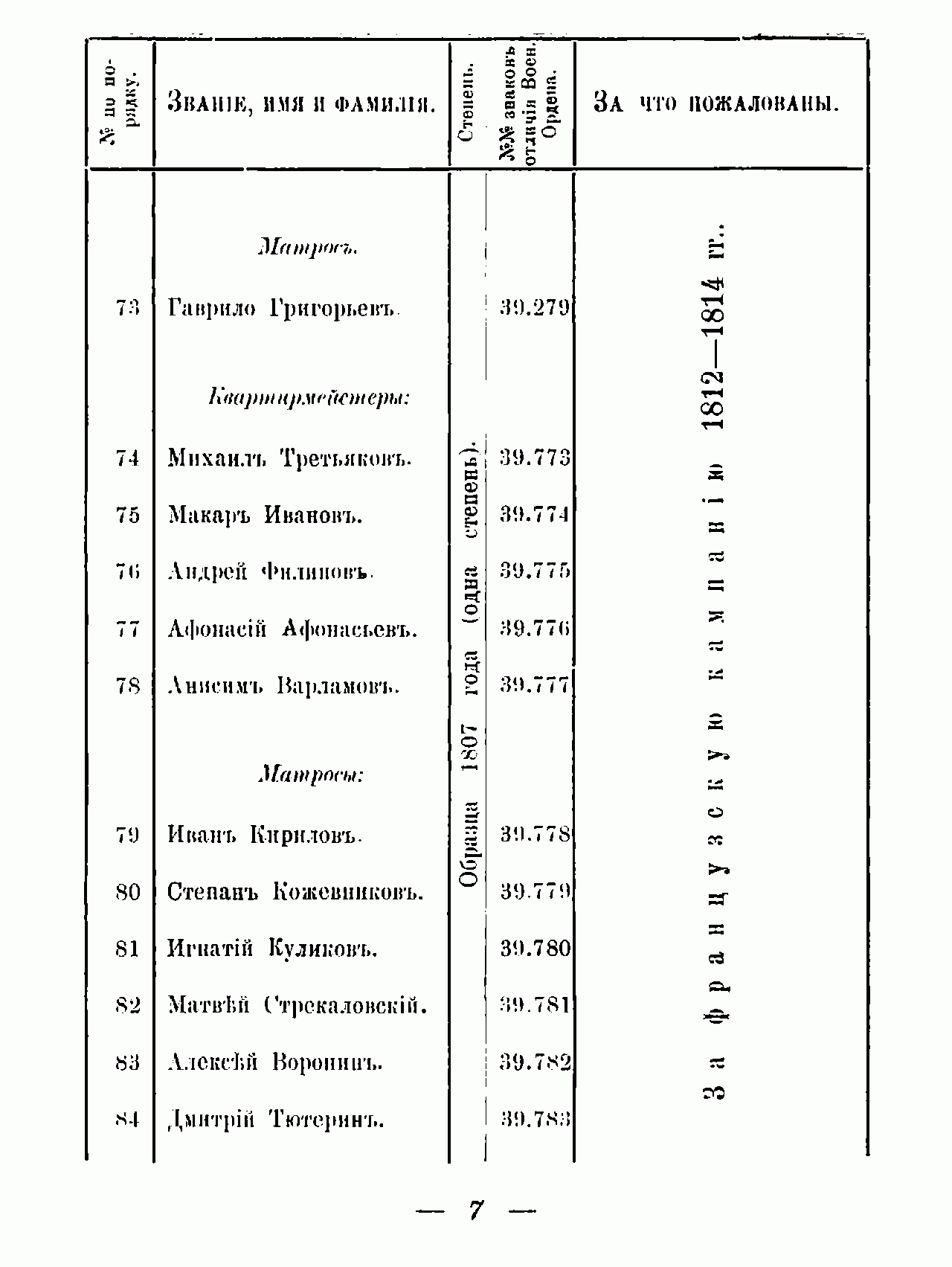 Списокъ нижнихъ чиновъ - Георгiевскихъ кавалеровъ Гвардейскаго экипажа со времени его формированiя въ 1810 году