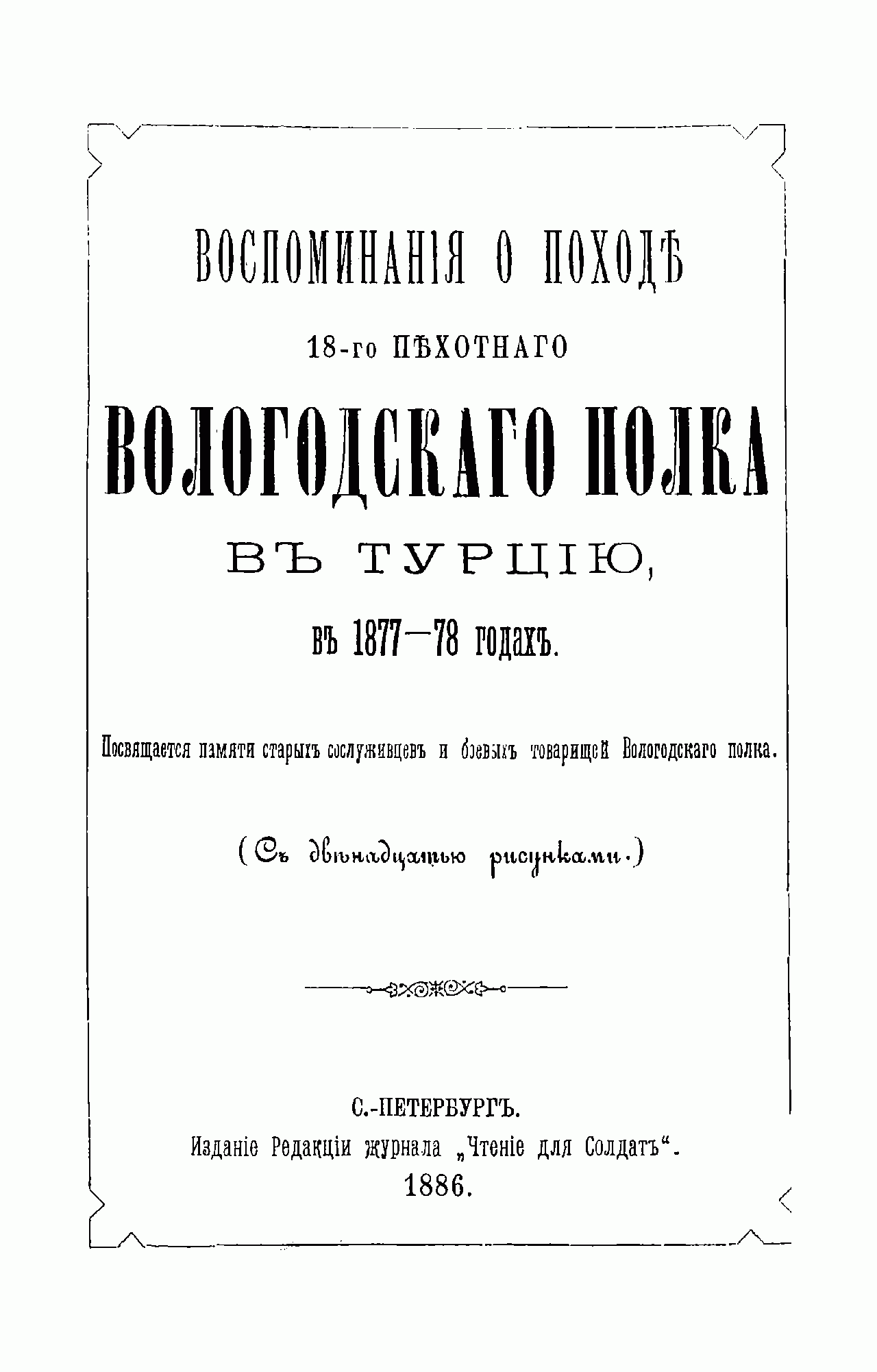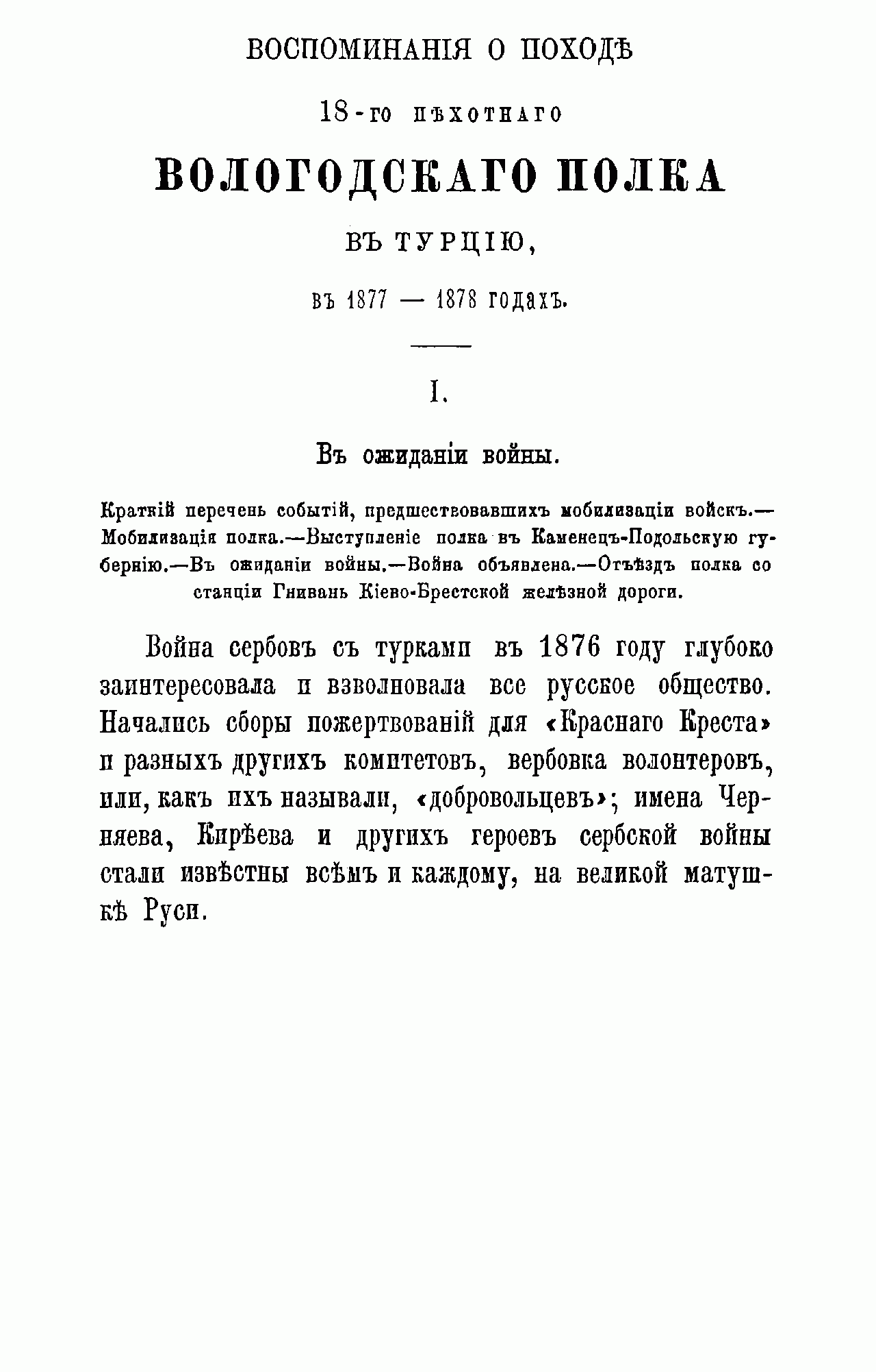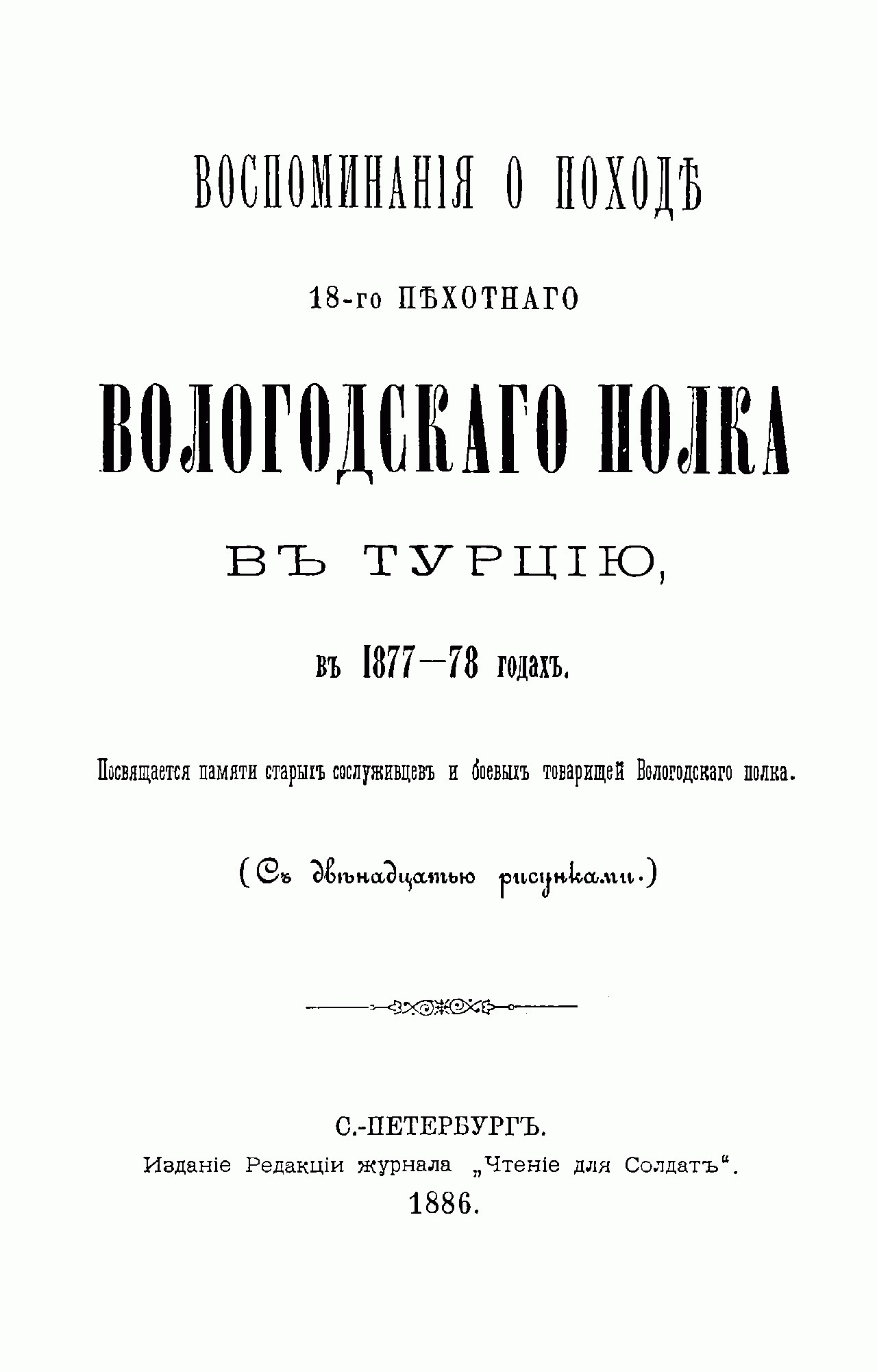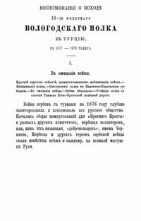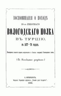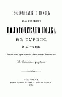 Воспоминанiя о походѣ 18-го Пехотнаго Вологодскаго полка въ Турцiю 1877-78 годах
