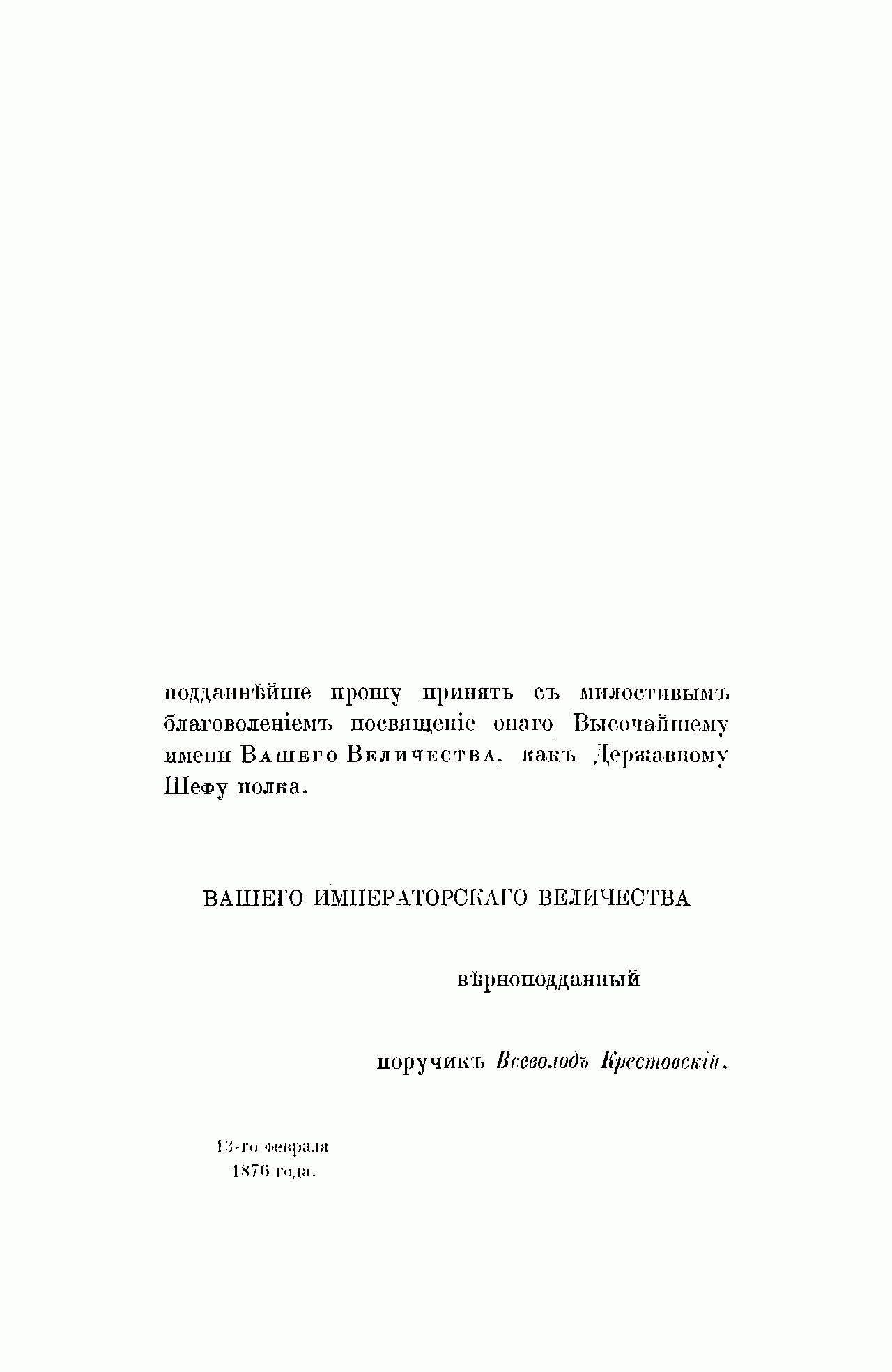 Данная книга формально принадлежит к типичным военно-историческим трудам, относящимся к историографии полков Российской императорской армии. Однако, это произведение имеет серьезные отличия от целого ряда остальных исследований подобного рода. Она принадлежит перу Всеволода Крестовского, получившего огромную популярность в литературных и политических кругах пореформенной России благодаря своему роману "Петербургские трущобы", опубликованному в журнале "Отечественные записки" в 1864-1866 годах. Выход в свет этой весьма скандальной книги сделал Крестовского одним из самых известных и модных писателей России. Ныне в современной России литературное творчество Крестовского вновь приобрело большую популярность. По его романам были подготовлены сценарии ряда телесериалов (прежде всего, криминальный сериал «Петербургские тайны» и другие экранизации). В июле 1868 года Крестовский добровольно поступил на службу в 14-й Уланский Ямбургский полк в Гродненской губернии, совмещая службу строевого офицера-кавалериста с творческой деятельностью. В 1870 году писатель в чине поручика был прикомандирован к Главному Штабу армии в Санкт-Петербурге с целью подготовки истории полка по личному указанию императора Александра II. В то же время он исполнял некоторые иные особые поручения, в результате которых в 1872 году был переведен тем же чином в лейб-гвардии Уланский полк. В дальнейшем Крестовский дослужился до генеральского чина, получив в обществе характеристику ярого консерватора и «охранителя», что в дальнейшем значительно повлияло на судьбу его литературного наследия. Историю полка гвардейских улан, по мнению автора, следует начинать с казачьих слободских полков «черкасов», переселившихся с гетманской «украины» на территорию России в середине XVII в. В дальнейшем первая попытка формирования уланских частей была предпринята в царствование императрицы Екатерины Великой. Во время образования Новороссийской губернии. Так, в марте 1764 года, было предложено сформировать поселенный кавалерийский полк, вооруженный пиками, и назвать его, по образцу других европейских армий, уланским. На образование этого рода кавалерии хотя и последовало «высочайшее разрешение», но на название уланов Екатерина II не согласилась, и поэтому предложенный в проекте Елизаветградский уланский полк получил название Елизaветгpaдcкого пикинерного и был сформирован преимущественно из казаков и из двух пандурских полков Ново-Сербского поселения. Соответственно названию, этому роду войска, были выданы пики, но только без флюгеров. В том же году прибавлены еще три пикинерные полка: Луганский, Донецкий и Днепровский, а со временем их число увеличилось за счет формирования Полтавского и Херсонского полков. Однако в 1784 году эти шесть полков были переименованы в "легкоконные полки Екатеринославской армии". Следующим этапом формирования уланских частей в русской армии, следует считать указ Павла I о создании в 1797 г. легкоконного полка по образцу польских конных частей, получившего обмундирование и вооружение, похожее на войска мятежных польских «конфедератов». Но эта реформа не получила дальнейшего развития. Наконец, в мае 1803 г. из эскадронов, отчисленных по два от гусарских полков: Сумского, Изюмского и Мариупольского и рекрутов, сформирован Одесский гусарский полк в со