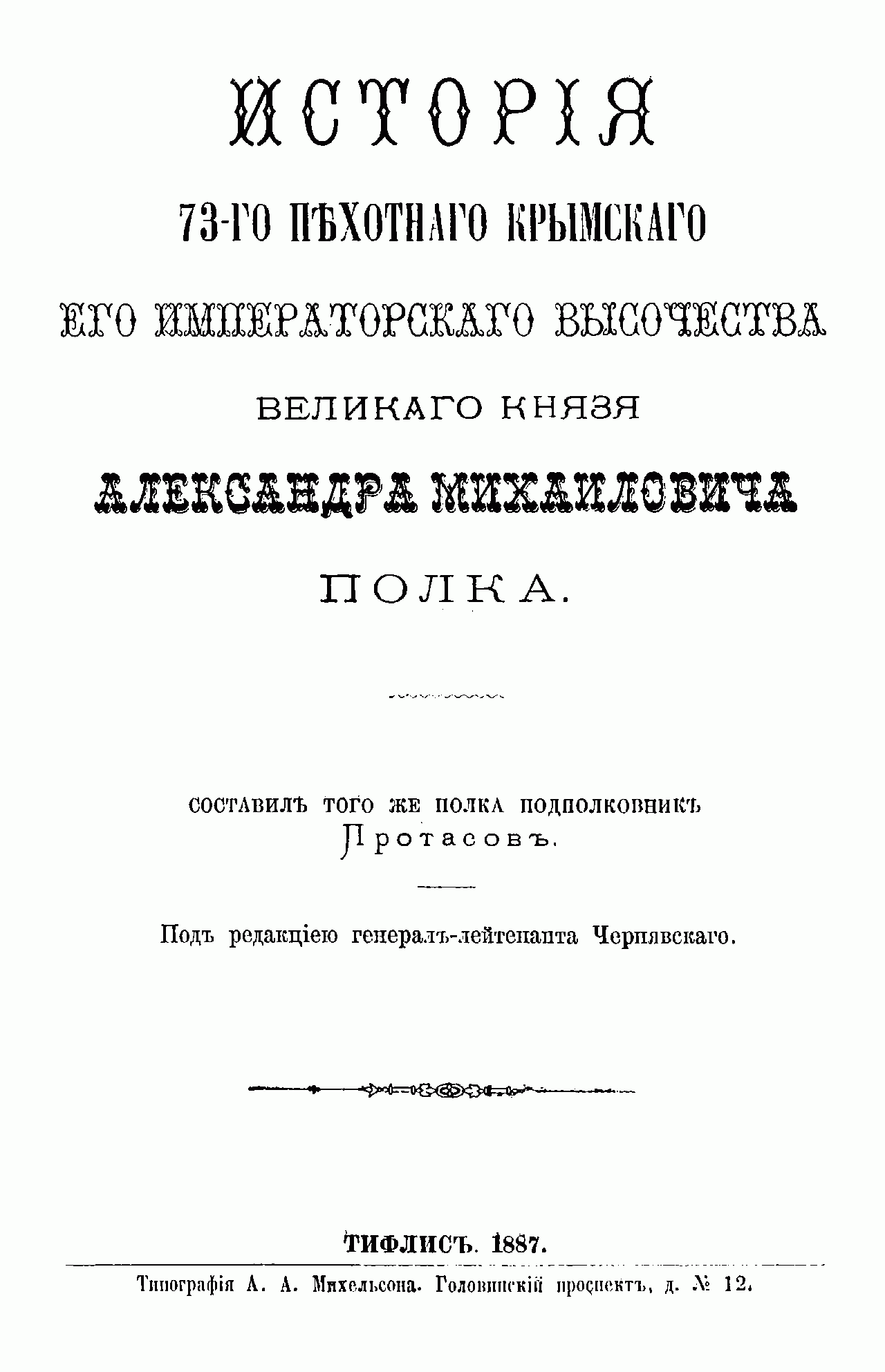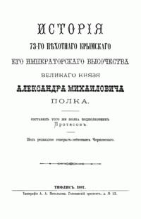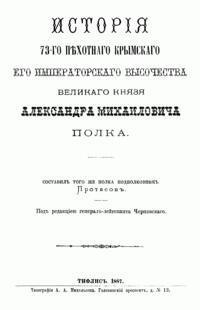 Исторiя 73-го Пѣхотнаго Крымскаго Его Императорскаго Высочества великаго князя Александра Михайловича полка