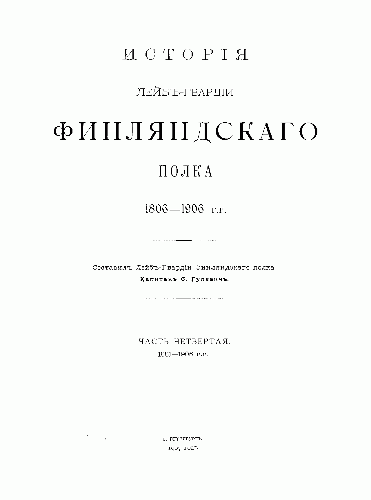 Исторiя Лейбъ-гвардiи Финляндскаго полка 1806-1906 г.г. Часть четвертая