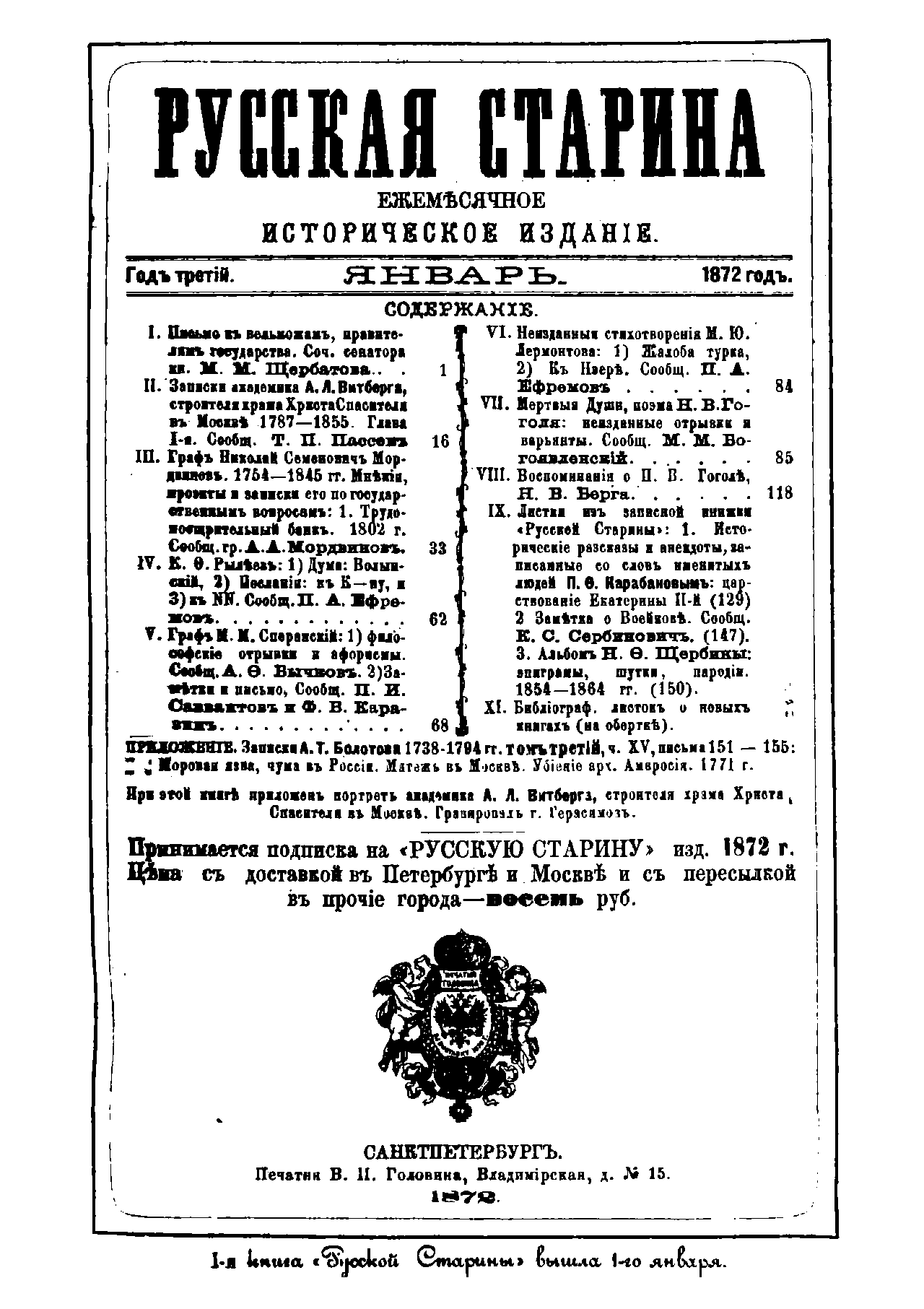 Русская старина. Томъ V. 1872. Выпуски 1-6