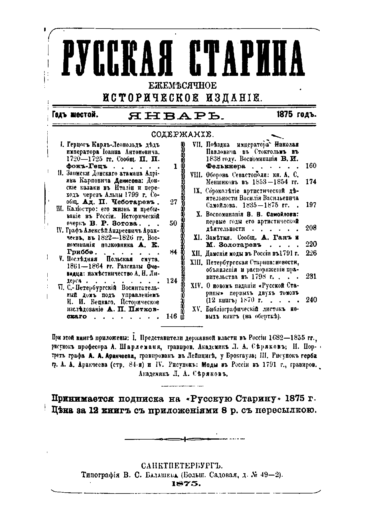 Русская старина. Том XII. 1875. Выпуски 1-4