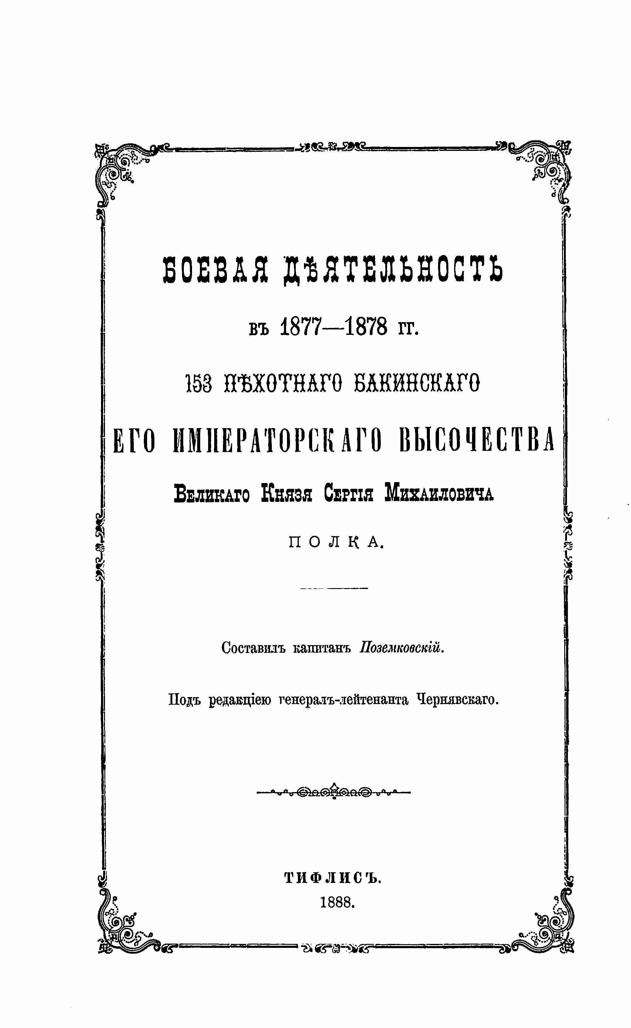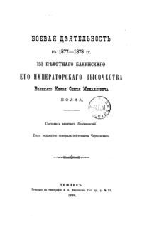 Боевая дѣятельность въ 1877-1878гг. 153 пѣхотнаго Бакинскаго Его Императорскаго Высочества Великаго Князя Сергея Михайловича полка