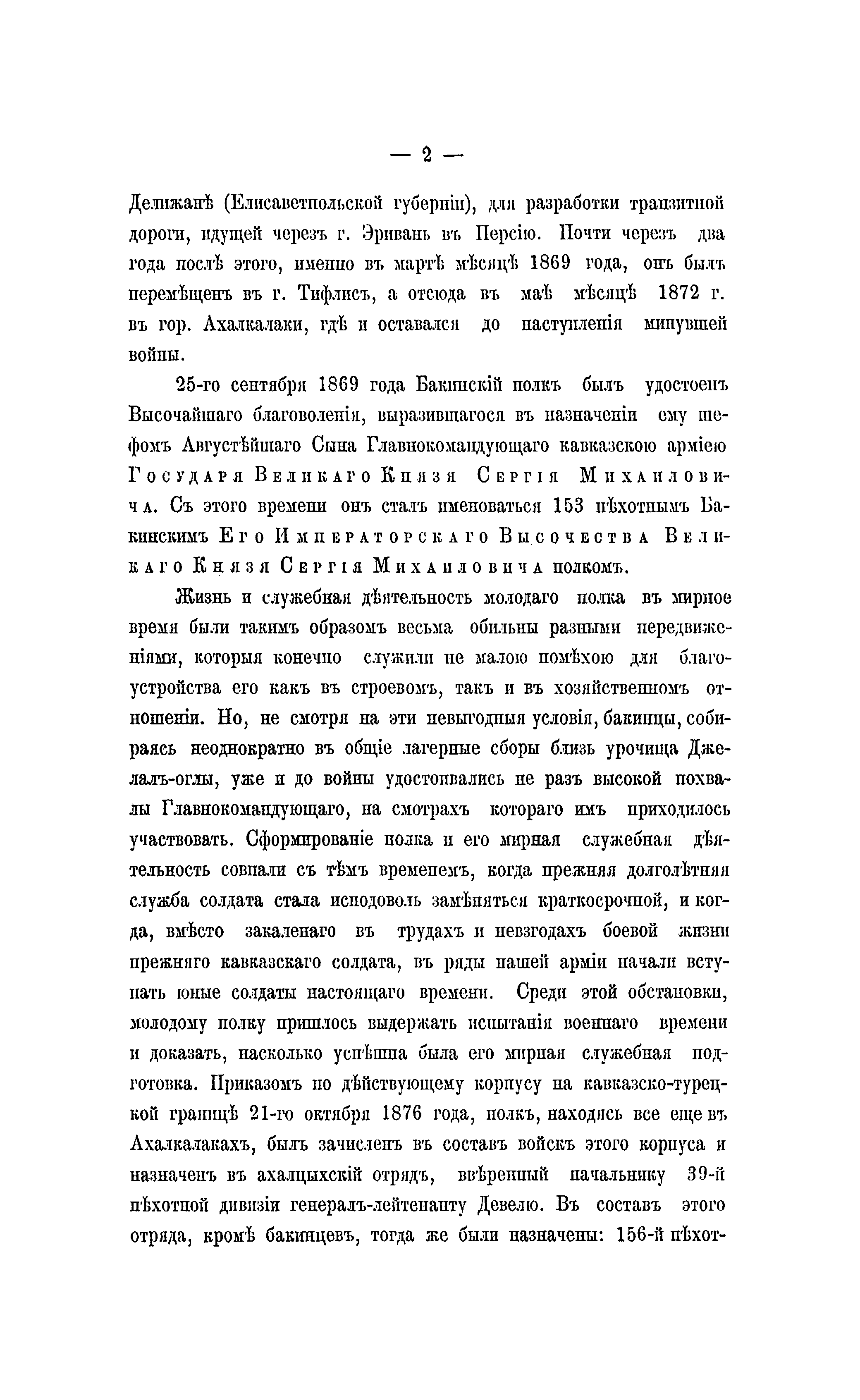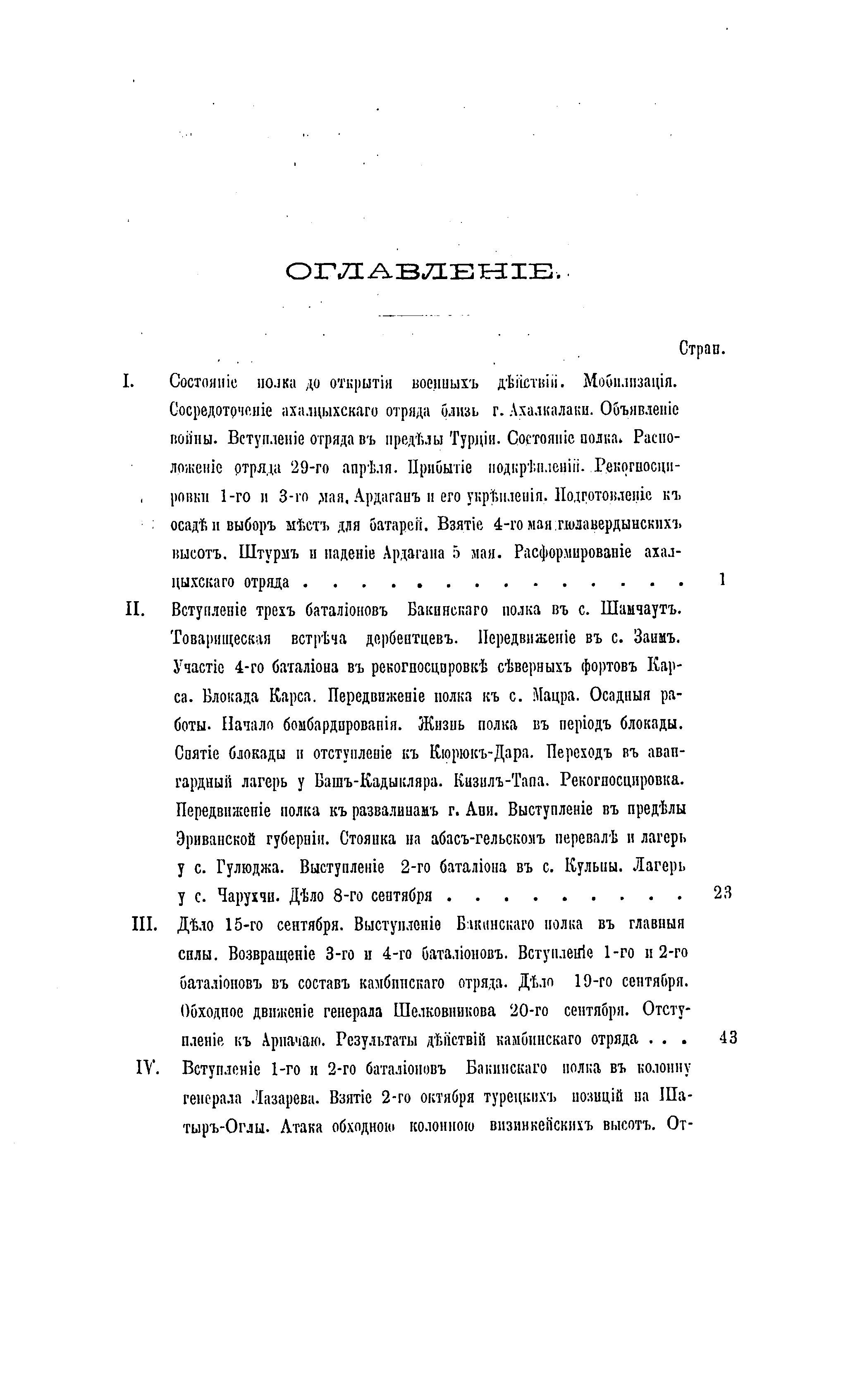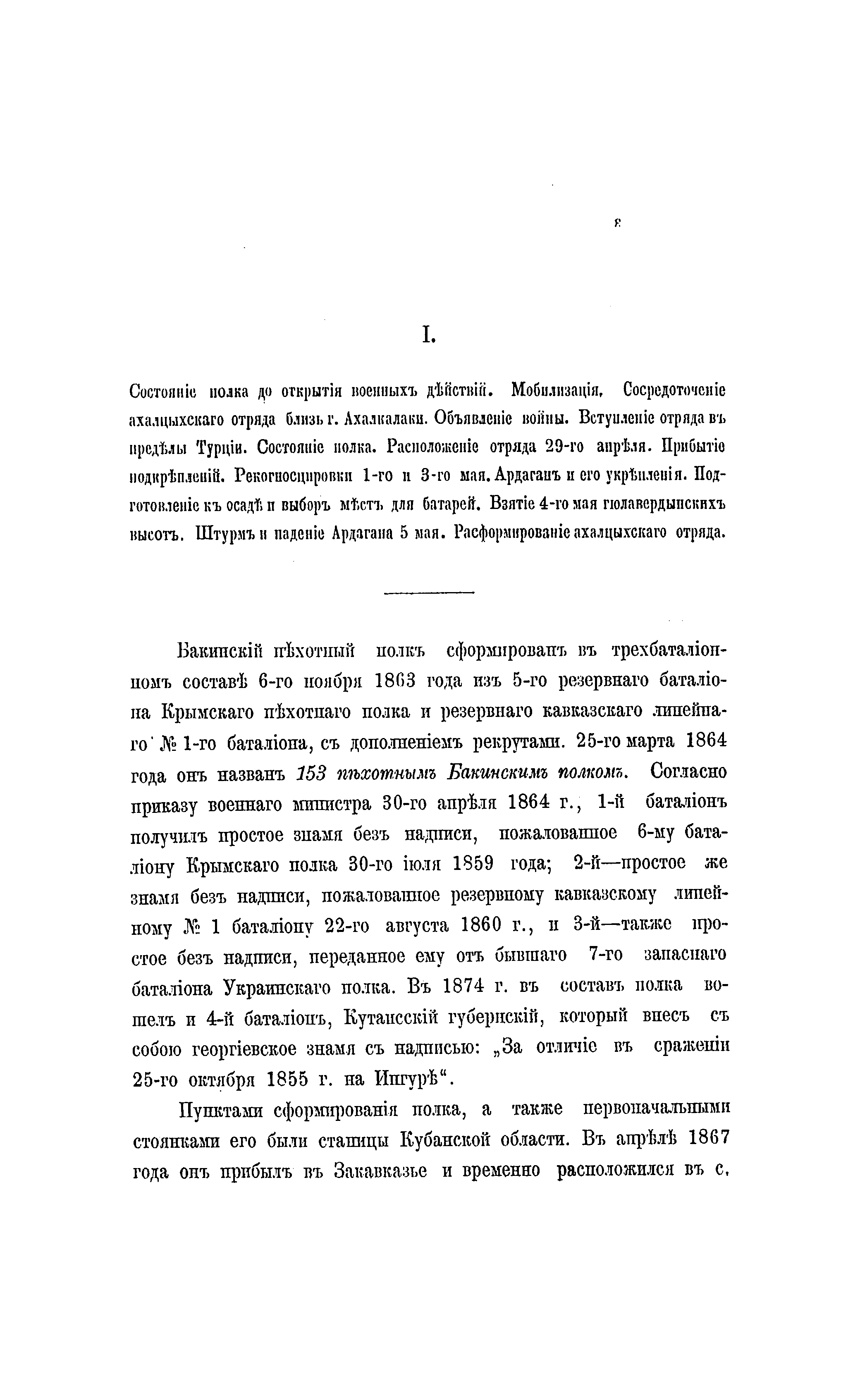 Данное издание специально подготовлено в рамках деятельности по сбору, обработке материалов и обобщению опыта боевых действий в период русско-турецкой войны 1877-1878 гг. на Кавказском ТВД, которая была поручена в 1886 г. военно-историческому отделу штаба Кавказского военного округа, возглавлявшемуся генерал-лейтенантом И. С. Чернявским. Краткий очерк боевых действий 153-го пехотного Бакинского Его мператорского Высочества Великого Князя Сергея Михайловича полка, сформированного в 1863 г. из резервных – батальона Крымского полка и Кавказского батальона, посвящён описанию его боёв в составе Кавказской армии, в колонне командира Елизаветпольского полка полковника князя М.К. Амираджибова. В ходе выдвижения от Ахалкалаки полк 4 мая 1877 г. взял в районе турецкой крепости Ардаган Гюлавердынские высоты, а на следующий день – укрепление Ахали. Другим важным сражением для бакинцев было взятие форта Азизие, в ночь на 28 октября 1877 г. Овладение этим фортом должно было находиться в связи с одновременным взятием трёх остальных фортов, защищавших подступы к городу-крепости Эрзерум. Однако боевая задача выполнена была только одним Бакинским полком, взобравшимся на вал по штурмовым лестницам и овладевшим укреплением после ночного штыкового боя. На следующее утро, из-за отсутствия поддержки, полку пришлось отступить, причём отступление проходило под натиском противника и его сильным огнем. Несмотря на это, полку удалось захватить до 600 пленных, взятых ночью. Помимо этого полк отличился: 12 августа 1877 г. — при занятии Аббас-Гельского перевала, 8 сентября — в бою за селение Чарухчи, 19 и 20 сентября — при наступлении против Кизил-Гула, 2 и 3 октября — при взятии Авлиара и Визинкейских высот и 23 октября — при атаке укреплённой позиции Деве-Бойну. Эти события детально изложены в представленном очерке. В приложениях содержатся поименные списки офицеров и нижних чинов полка, раненных и убитых в ходе боевых действий.