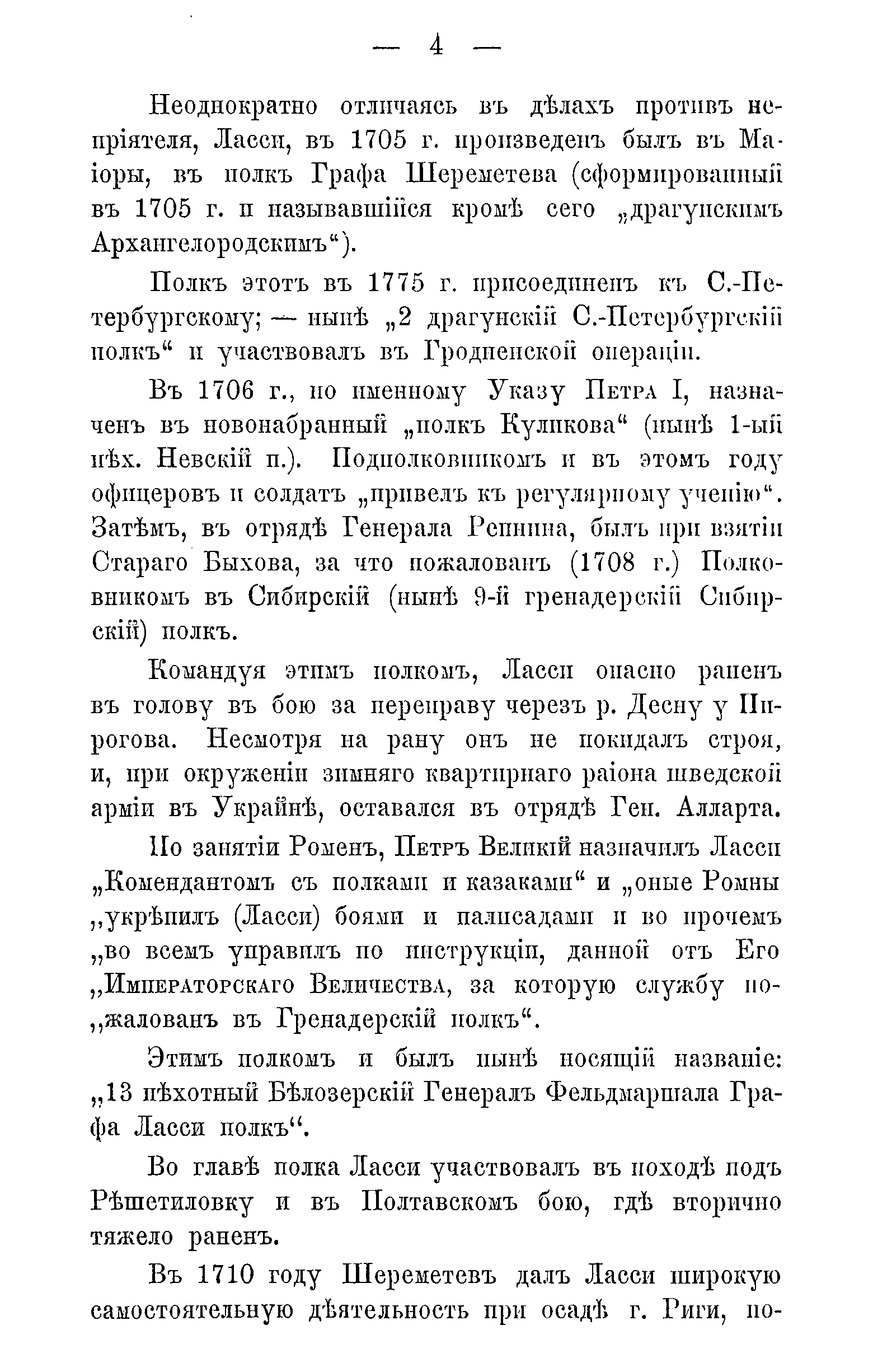 История 13-го Пехотного Белозёрского Генерал-Фельдмаршала Графа Ласси полка (1708-1893г.)