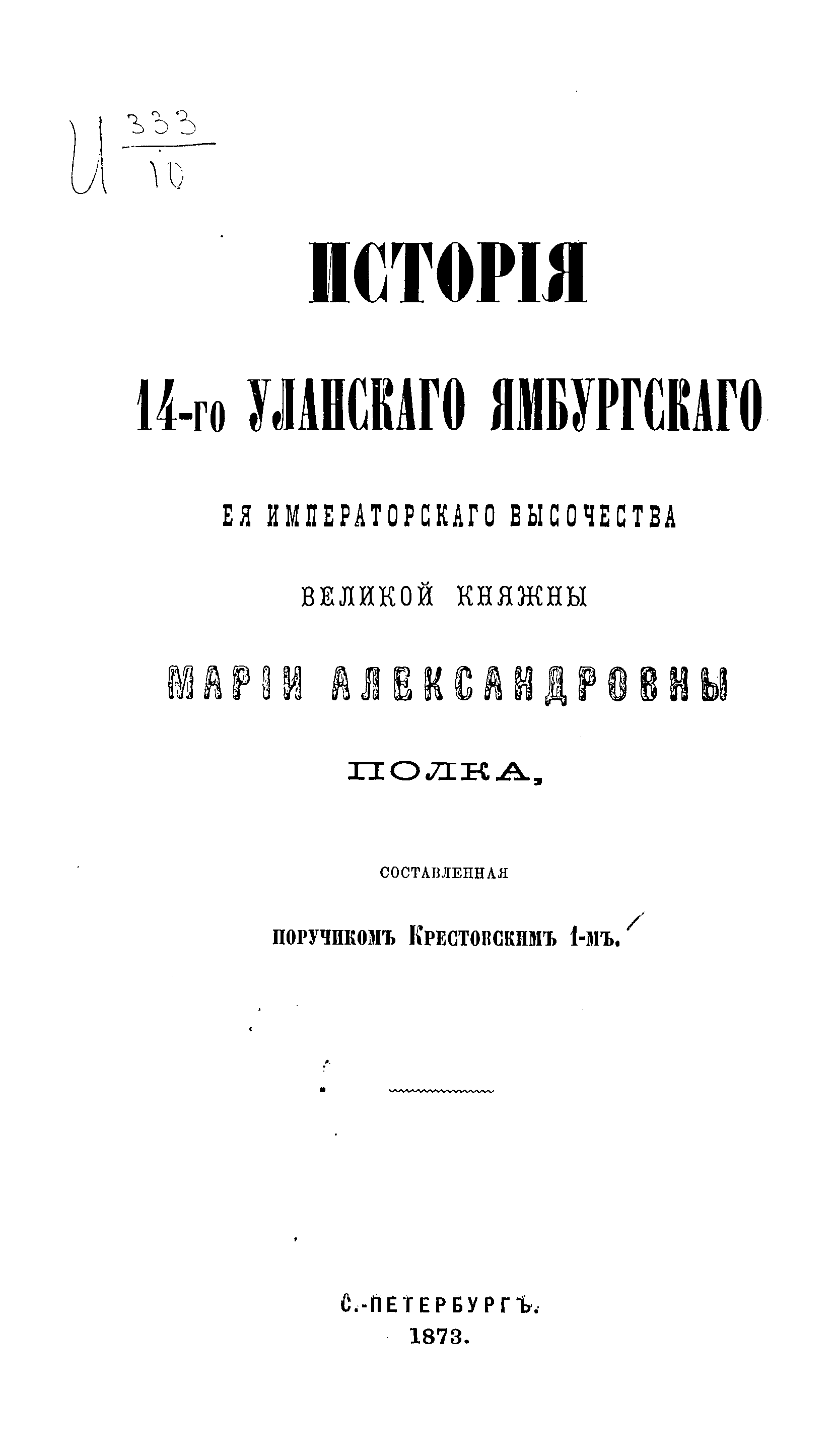 История 14-го Уланского Ямбурского Её Императорского Высочества Великой Княжны Марии Александровны полка