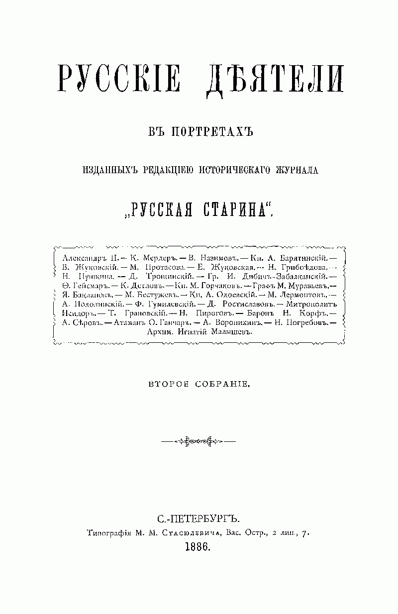 Русскiе дѣятели въ портретахъ. Второе собранiе