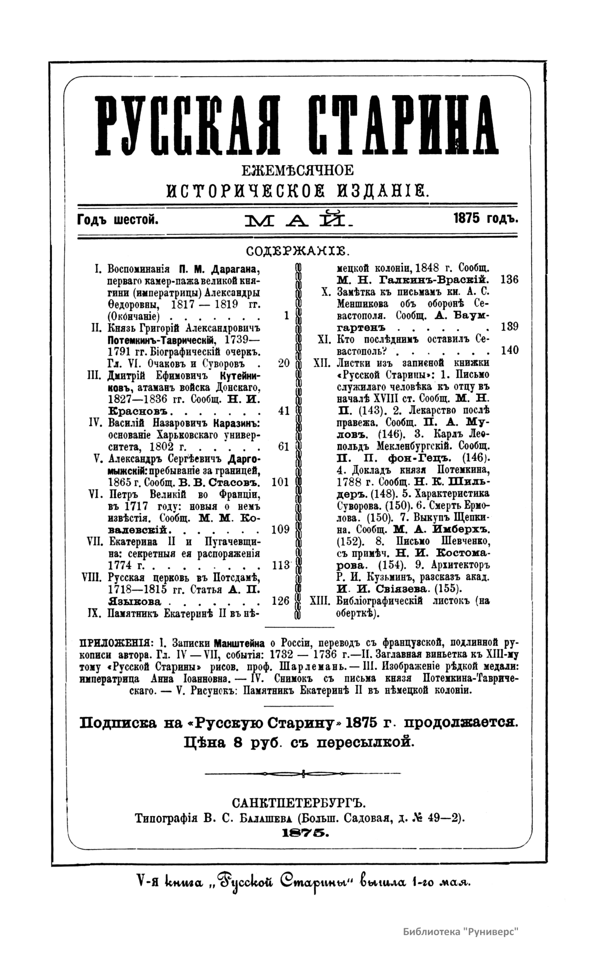 Русская старина. Том XIII. 1875. Выпуски 5-8