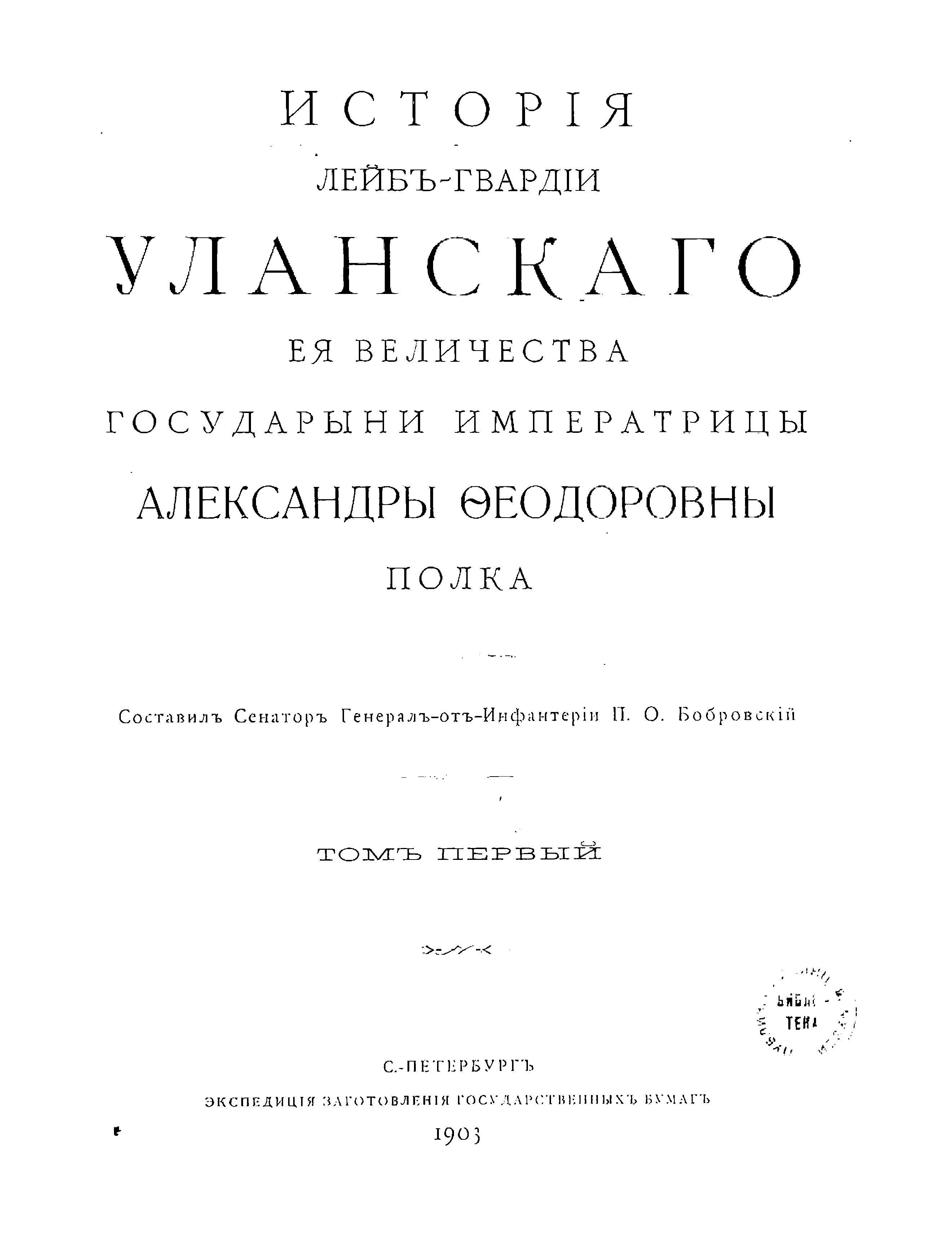 Исторiя Лейбъ-гвардiи Уланскаго Ея Величества Государыни Императрицы Александры ѳедоровны полка