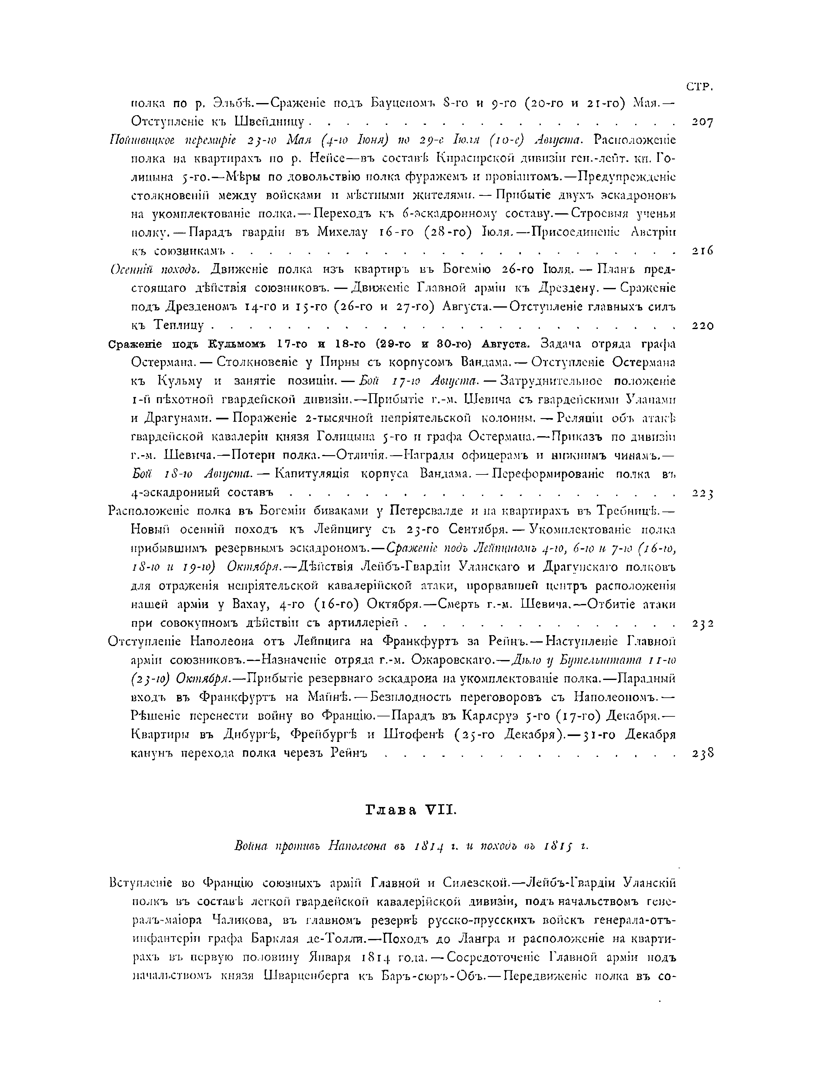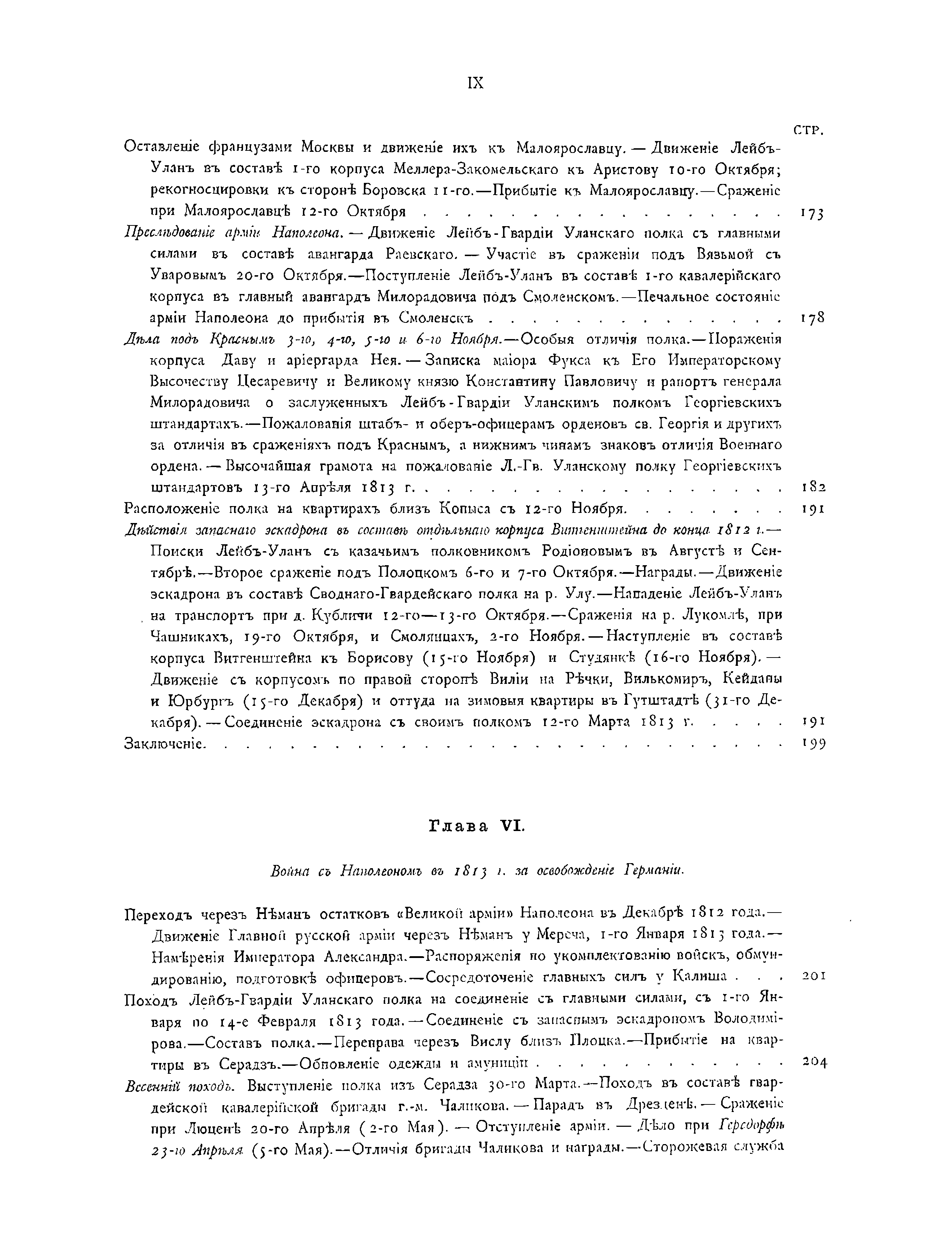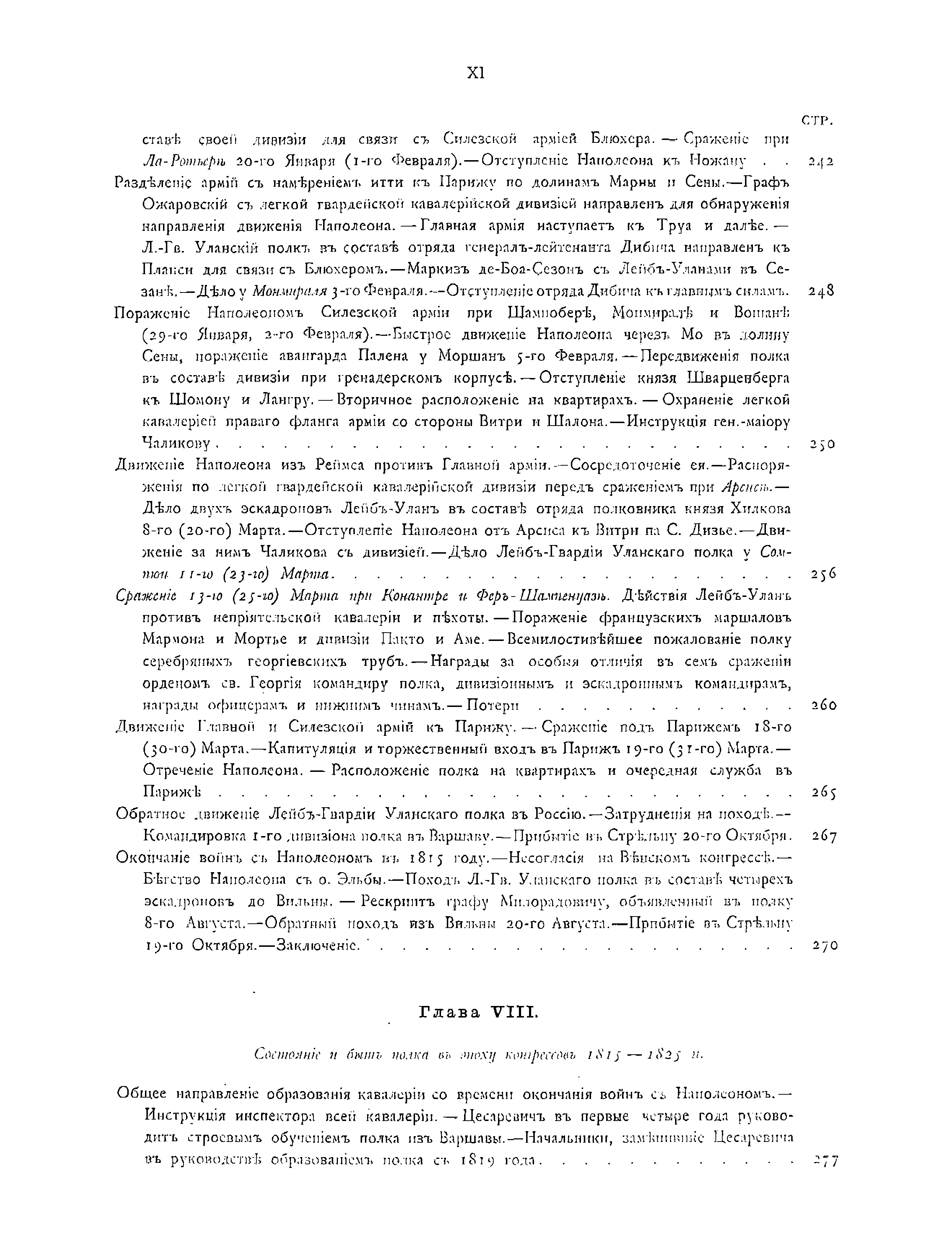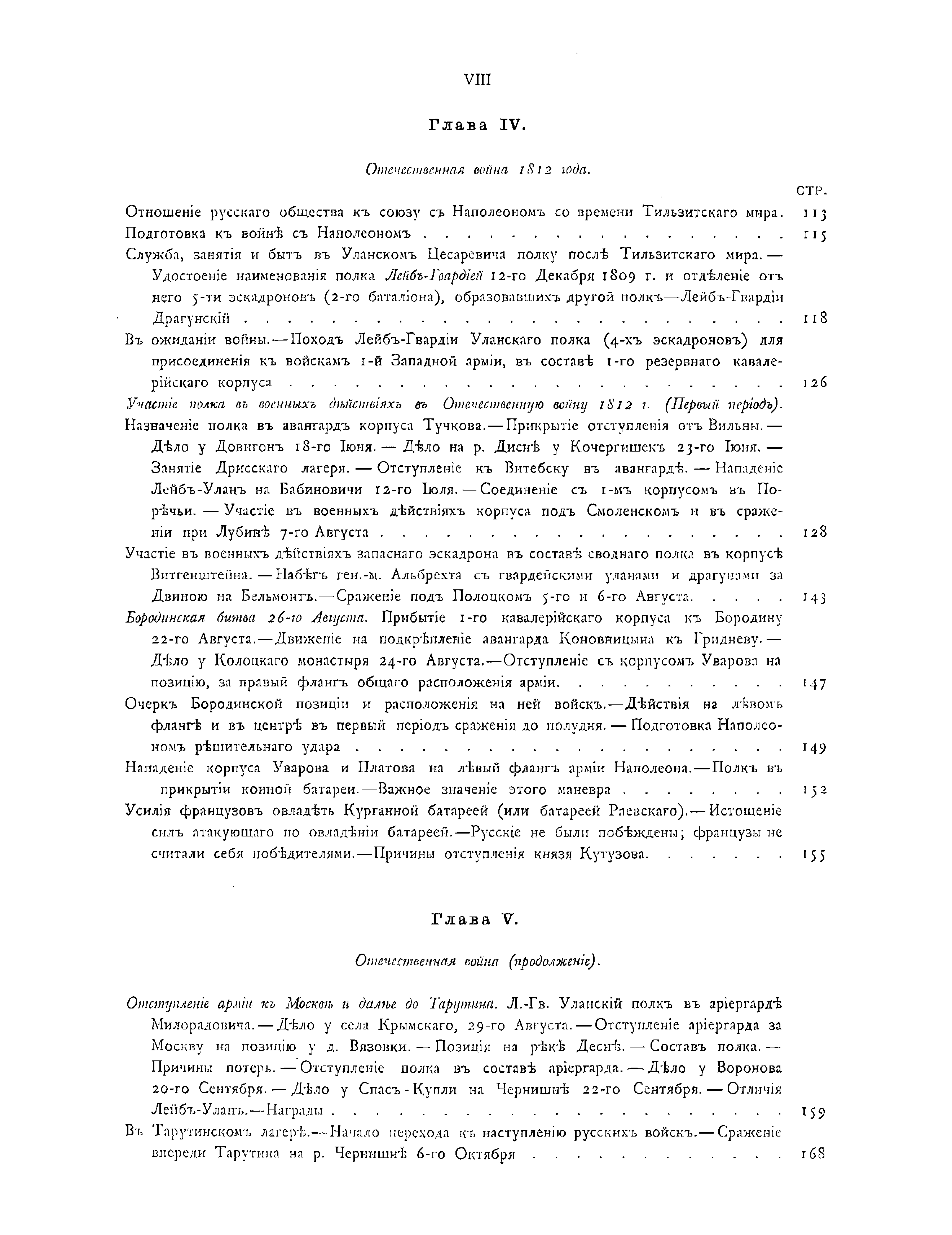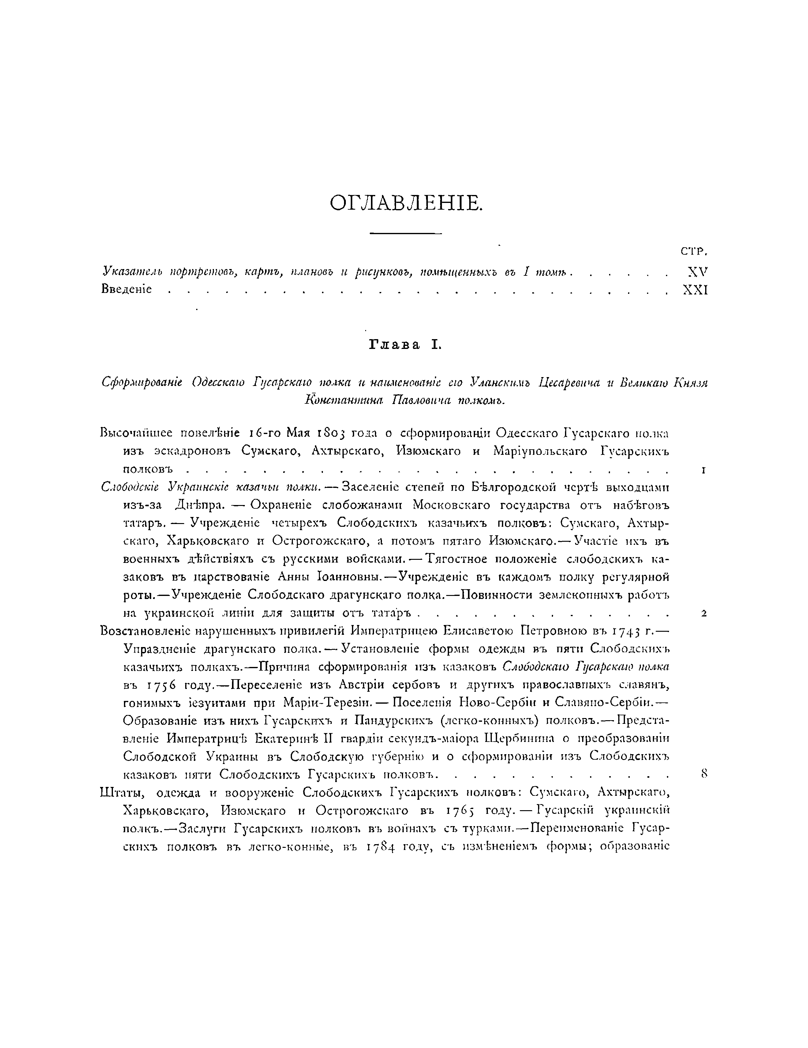 Документальное описание боевых действий полка и знаменательных исторических со-бытий, связанных с ним, за период 1803 – 1825 годов. Приведены описания униформы, вооружения и организации полка, собрание выписок из архивных документов по его истории, списки личного состава полка, кавалеров различных знаков отличия и пр.