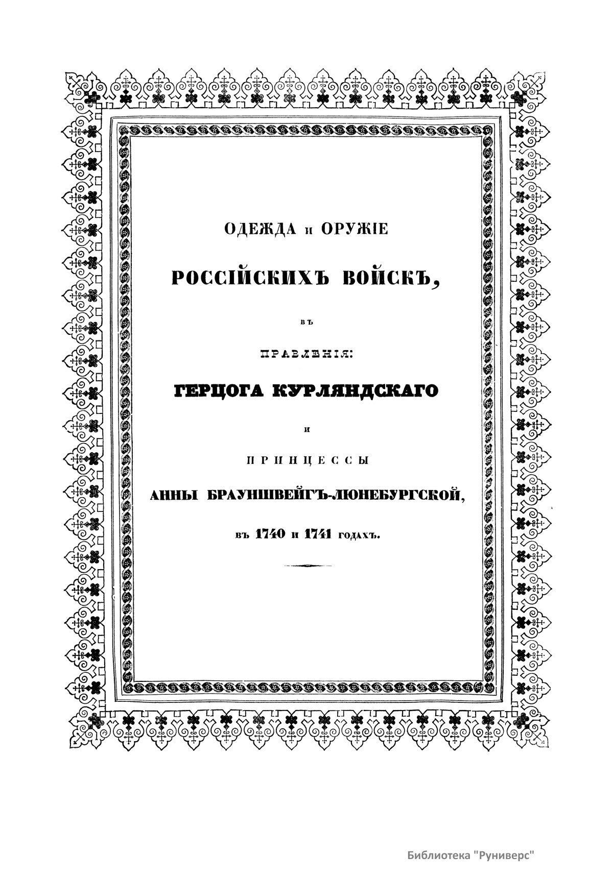 Многотомный труд «Историческое описание одежды и вооружения Российских войск, с рисунками, был составлен по высочайшему повелению» выходил в Санкт-Петербурге в 1841—1862 гг. Богато иллюстрированное издание содержало подробное описание военного и гражданского костюма за период с 862 г. до царствования императора Николая I, воинское обмундирование, оружие, знамена различных воинских частей, воинские знаки отличия.