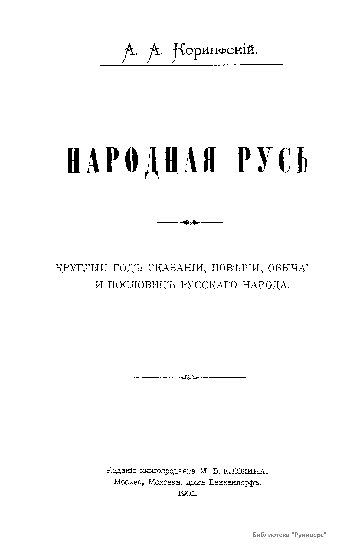 Народная Русь. Круглый годъ сказанiй, повѣрiй, обычаевъ и пословицъ русскаго народа