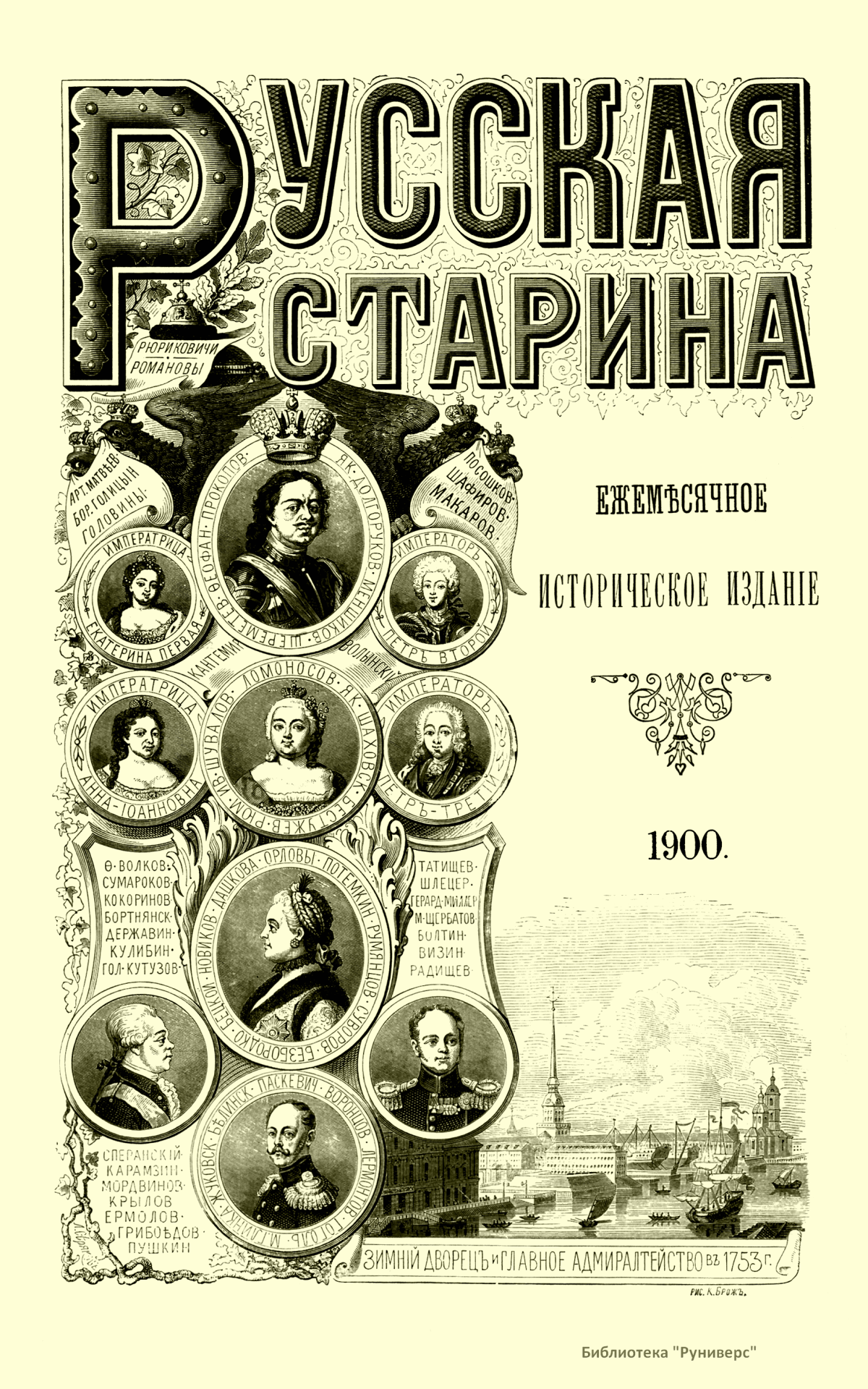 «Русская старина», ежемесячный исторический журнал, выходил в Петербурге в 1870-1918. Основан, издавался и редактировался (1870-1892) М. И. Семевским при участии В. И. Семевского. Последующими редакторами были Н. К. Шильдер (1892-1896), Н. Ф. Дубровин (1896-1904), военные историки С. П. Зыков, П. Н. Воронов.