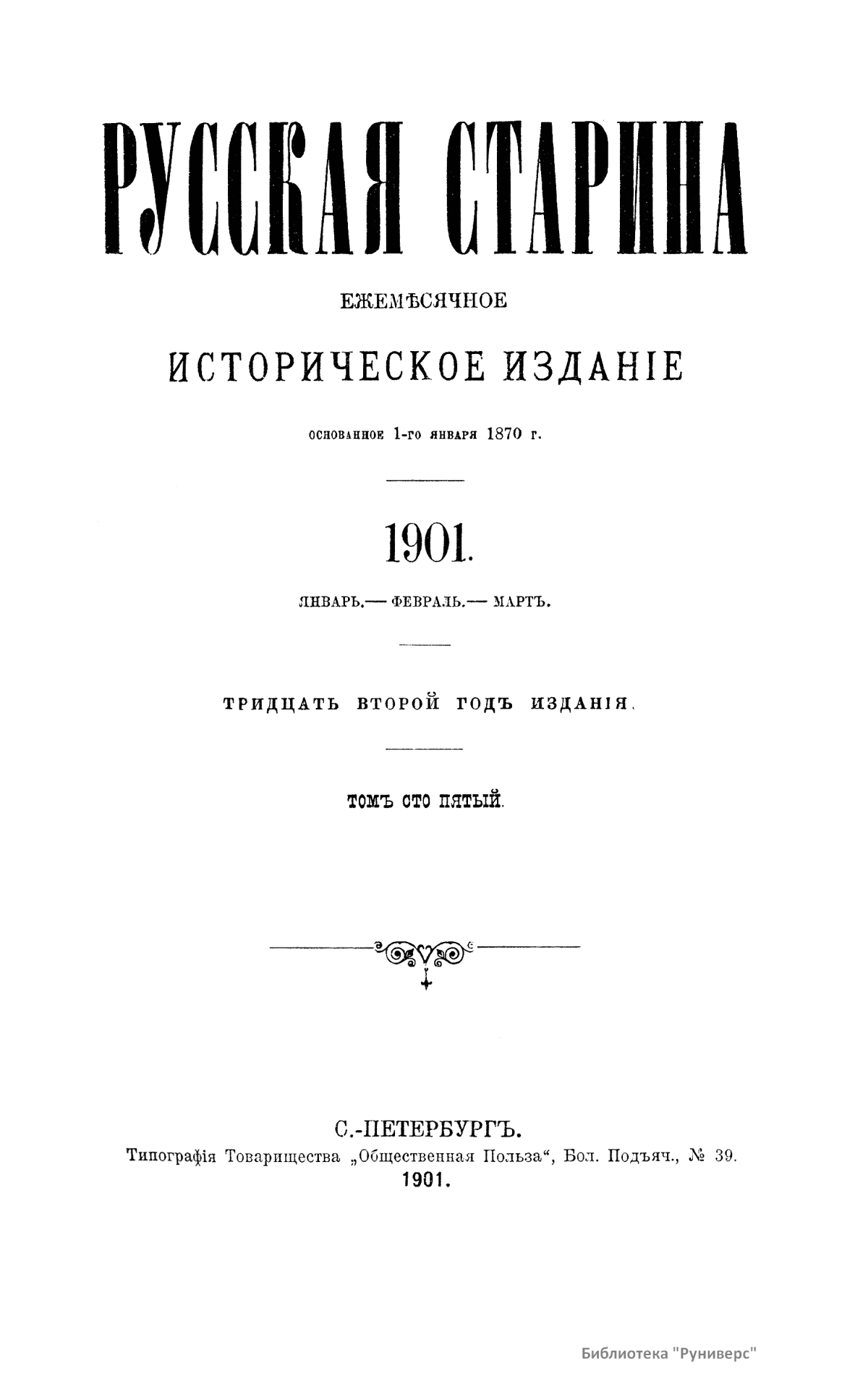 Русская старина. Томъ CV. 1901. Выпуски 1-3